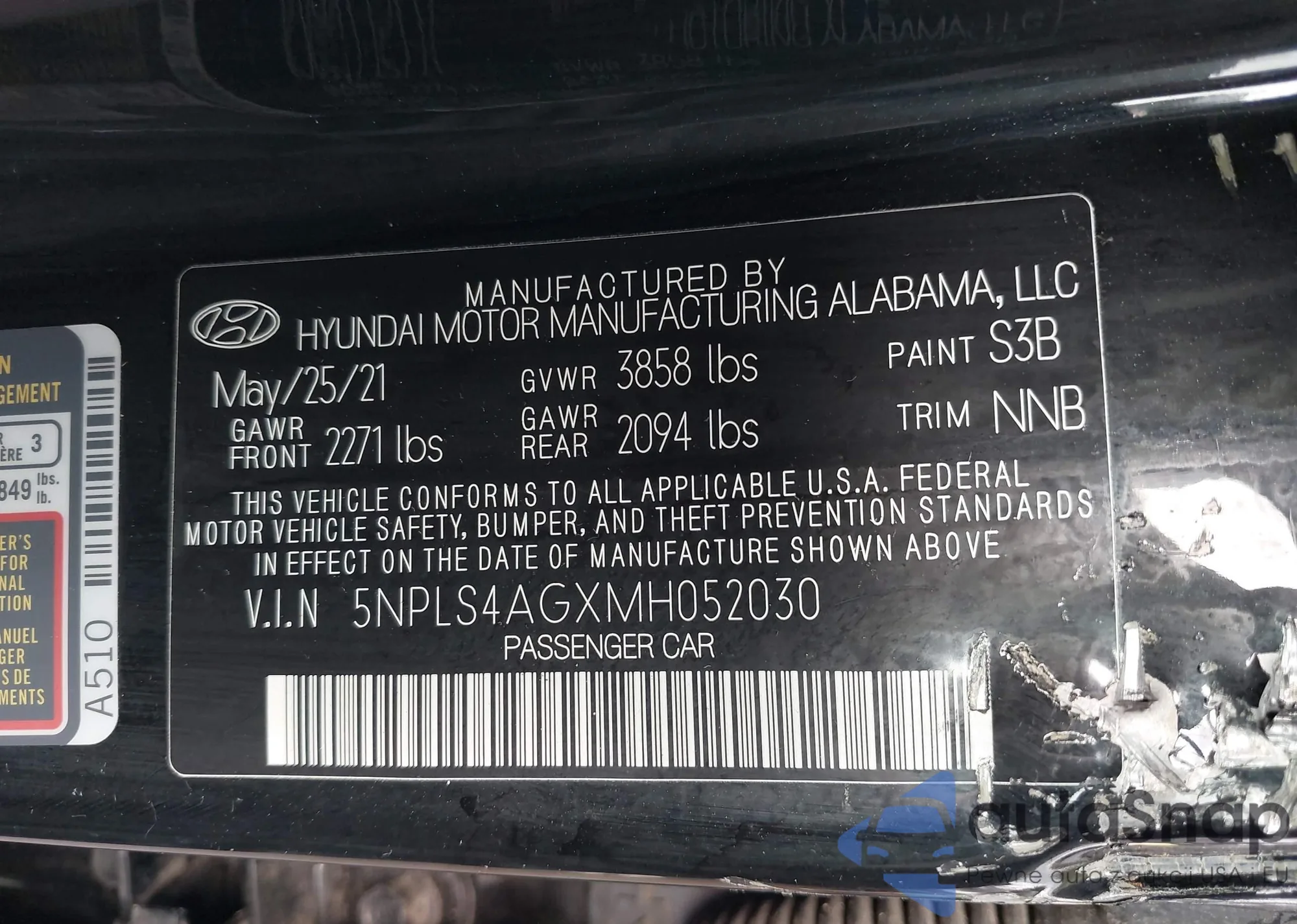 • VIN 5NPLS4AGXMH052030