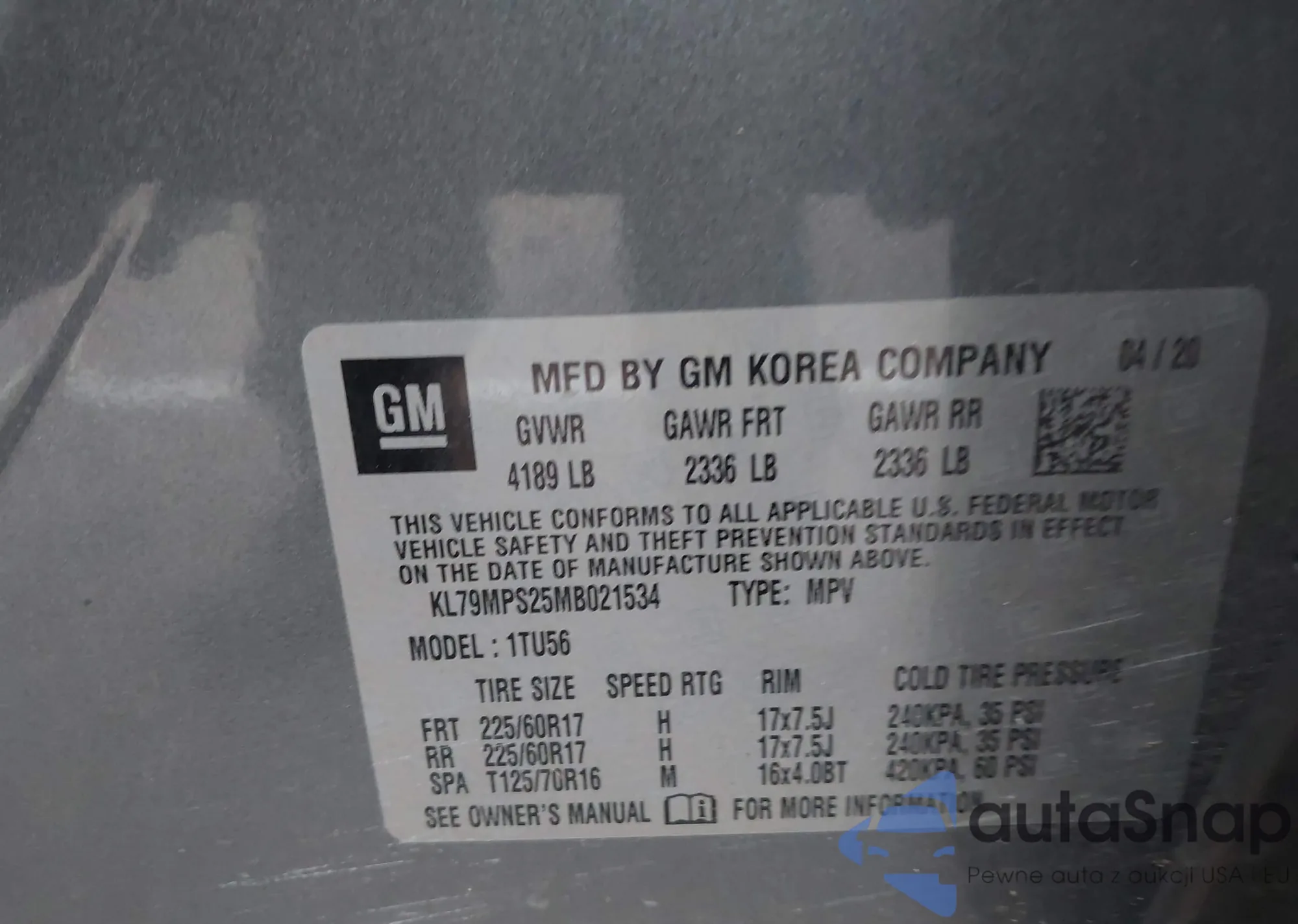 • VIN KL79MPS25MB021534