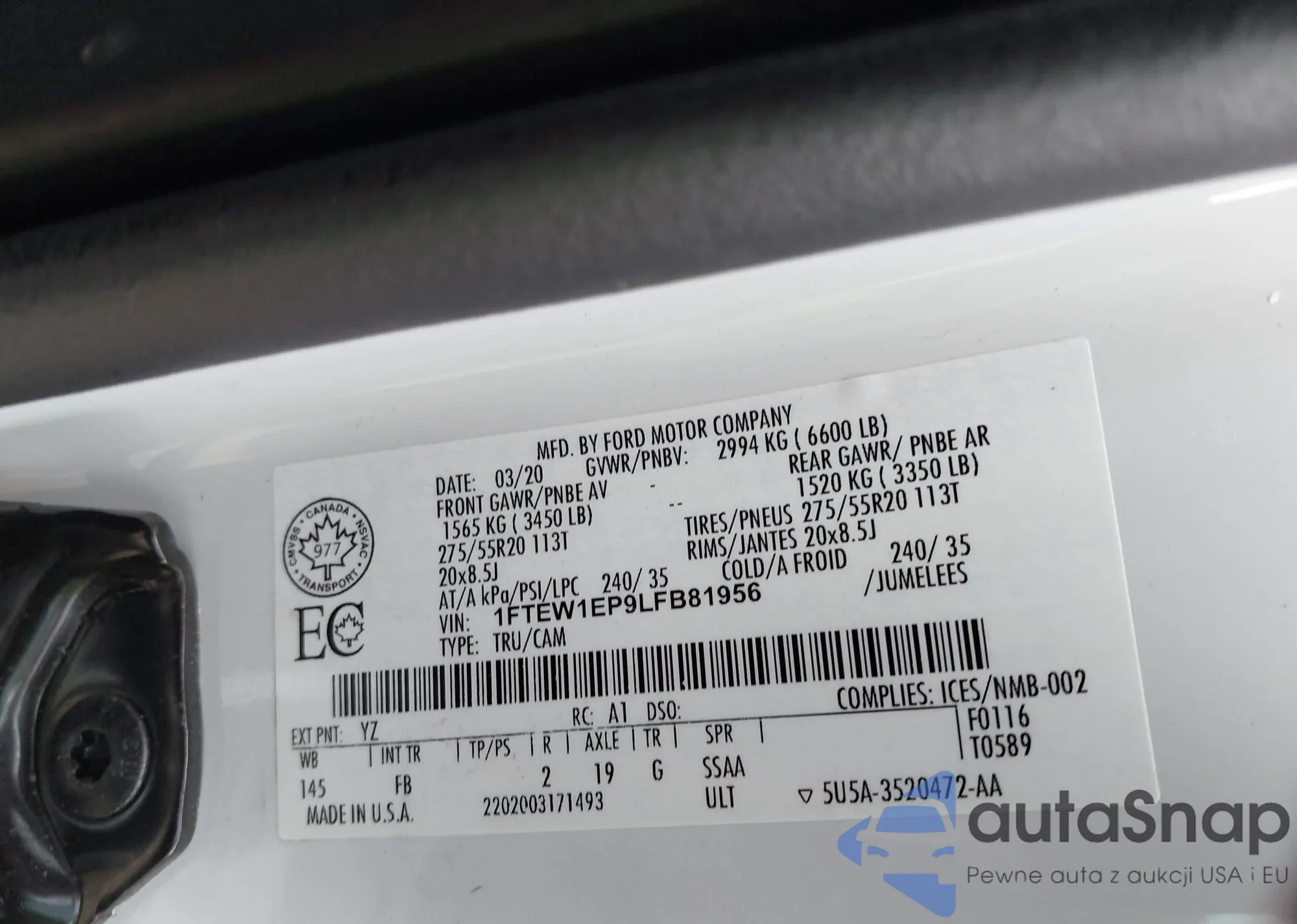 LOT: 43926426 VIN: 1FTEW1EP9LFB81956