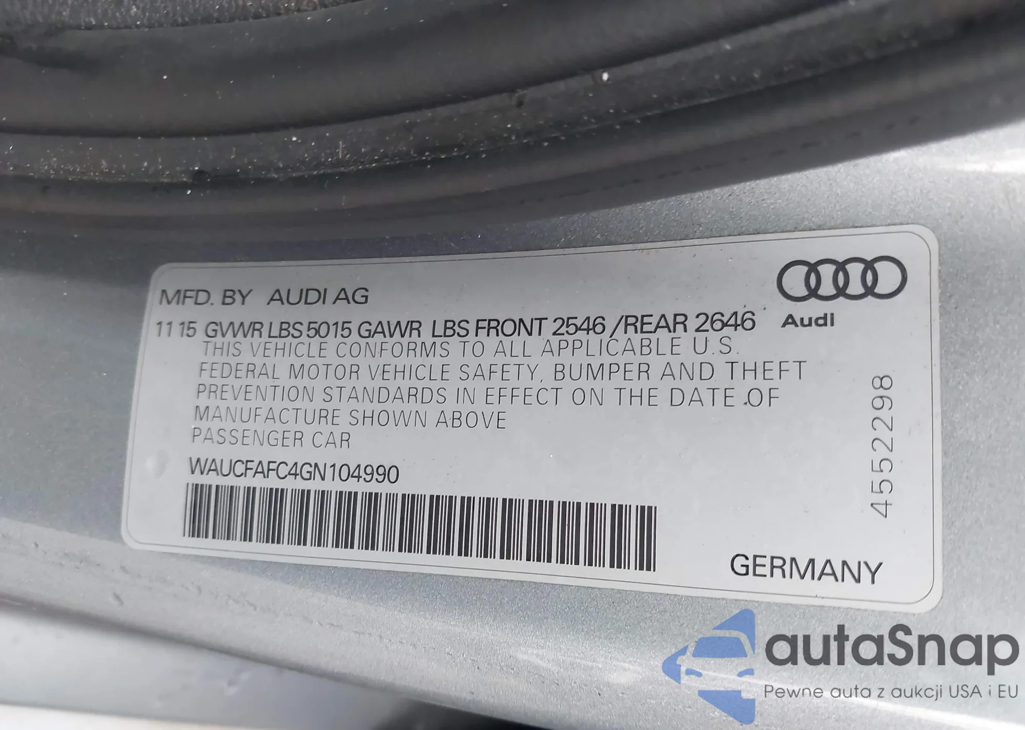 • VIN WAUCFAFC4GN104990