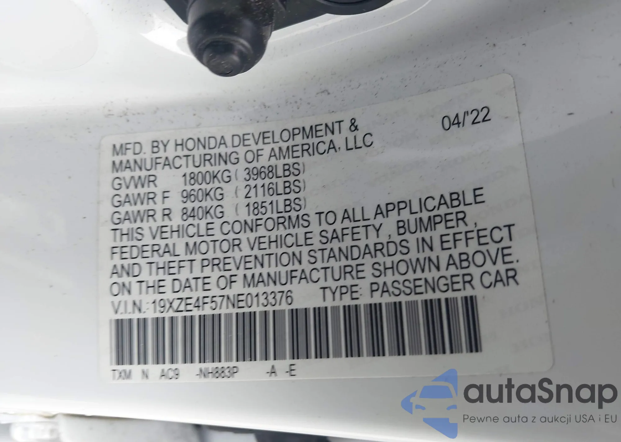 • VIN 19XZE4F57NE013376