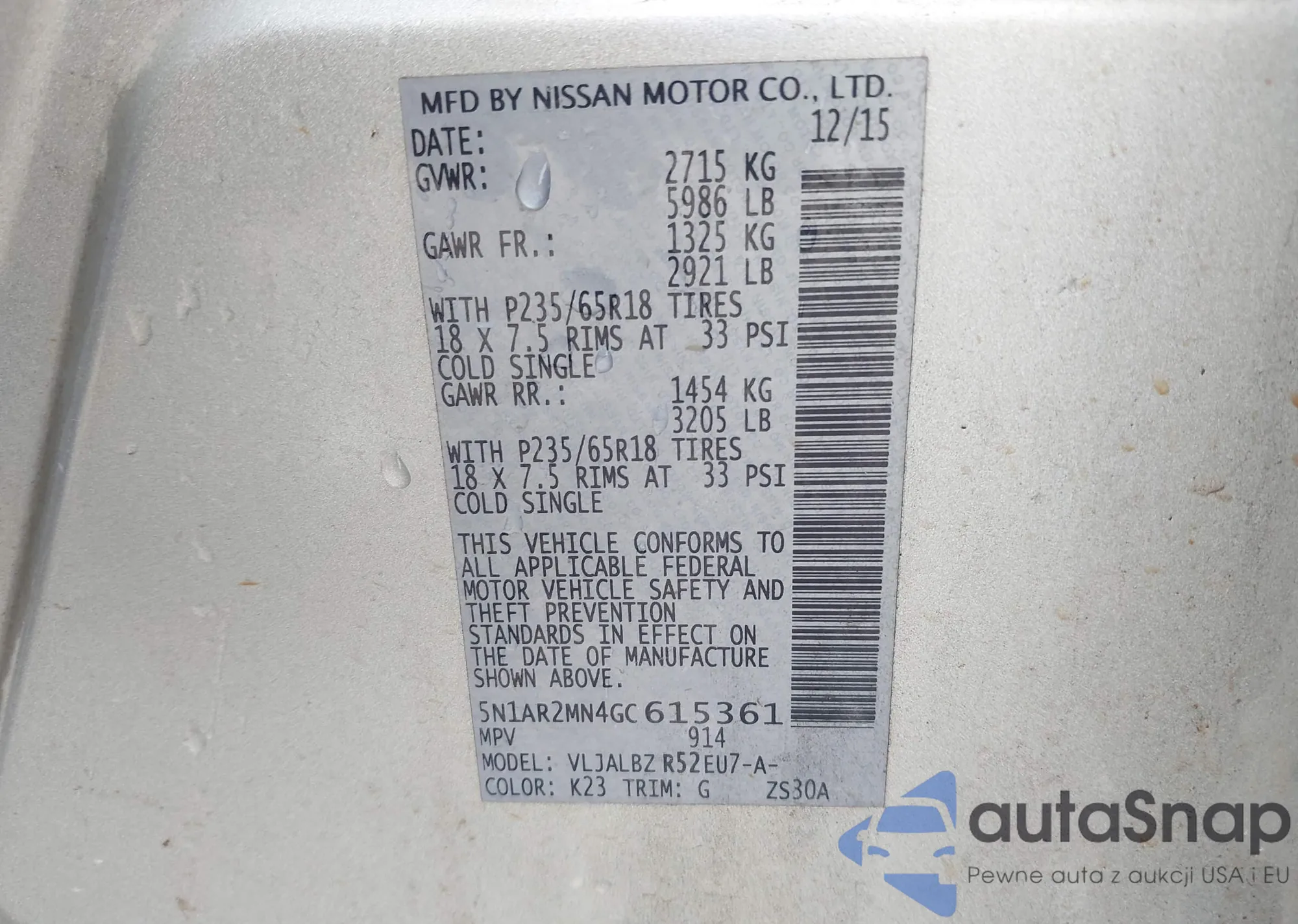 • VIN 5N1AL0MM4DC352104