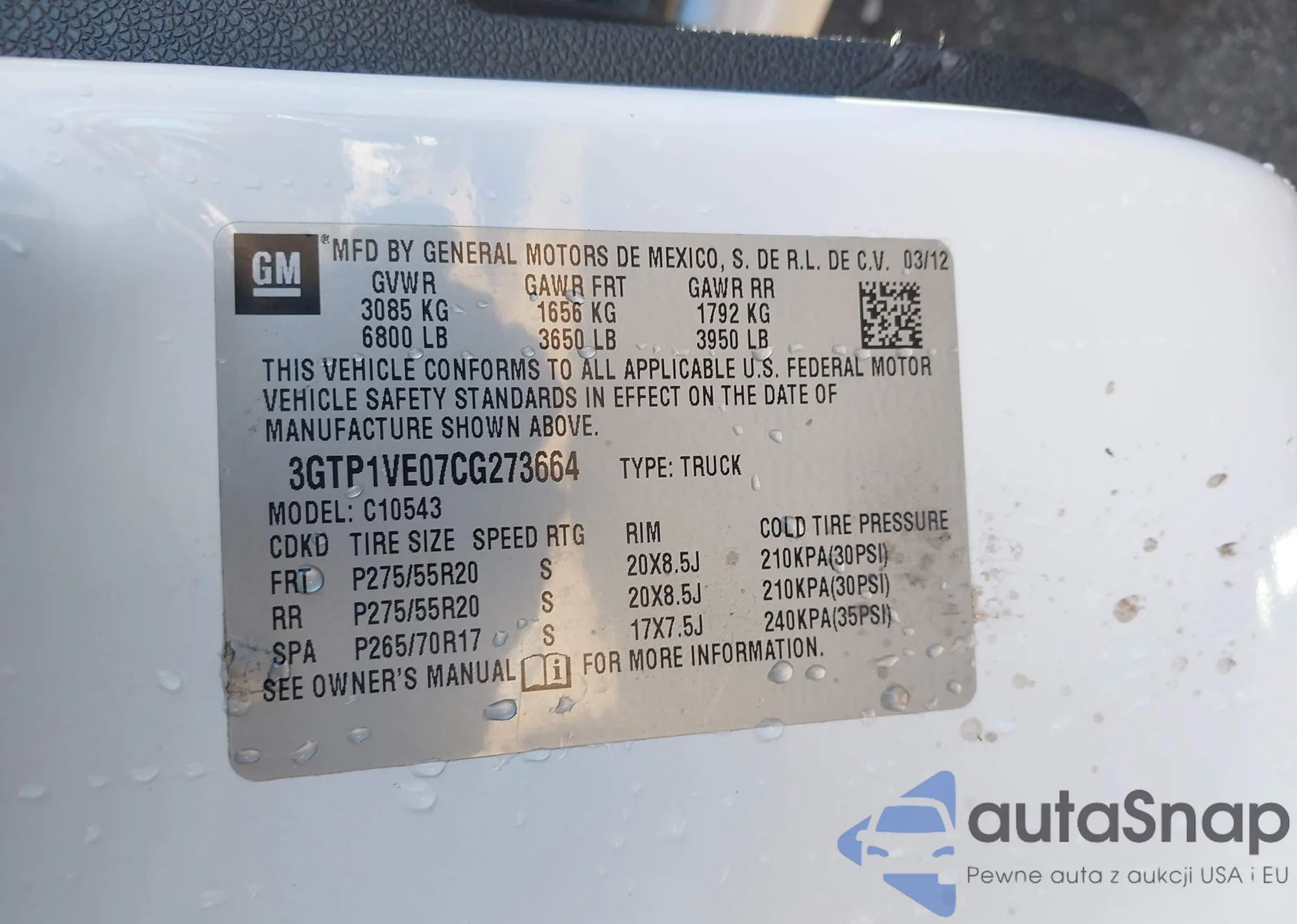 LOT: 44005211 VIN: JHLRE487X7C086320