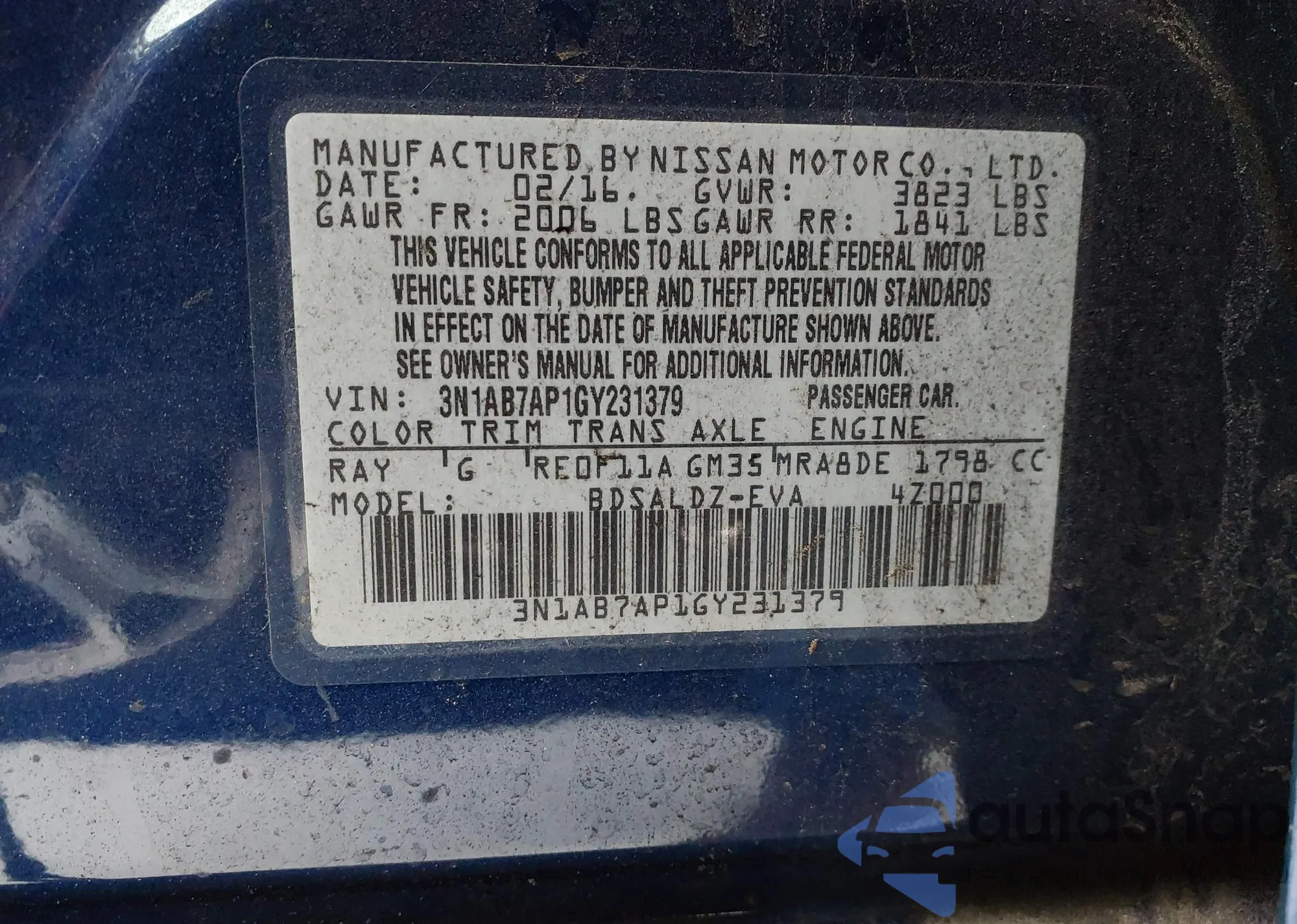 • VIN 3N1AB7AP1GY231379