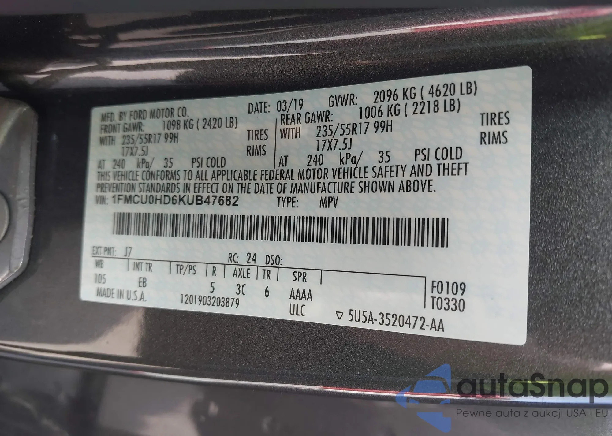 • VIN 2FMDK3J97DBA01396