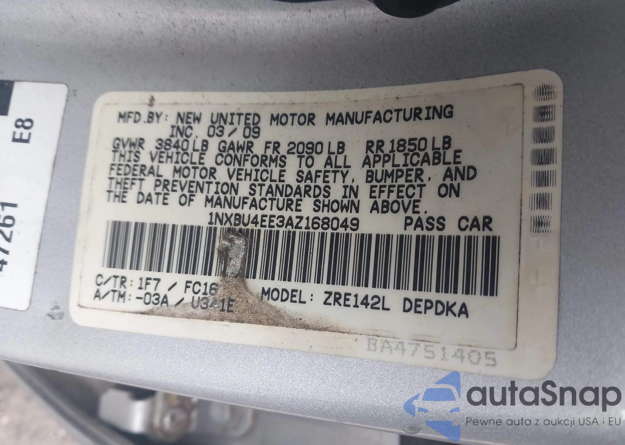 • VIN 1NXBU4EE3AZ168049