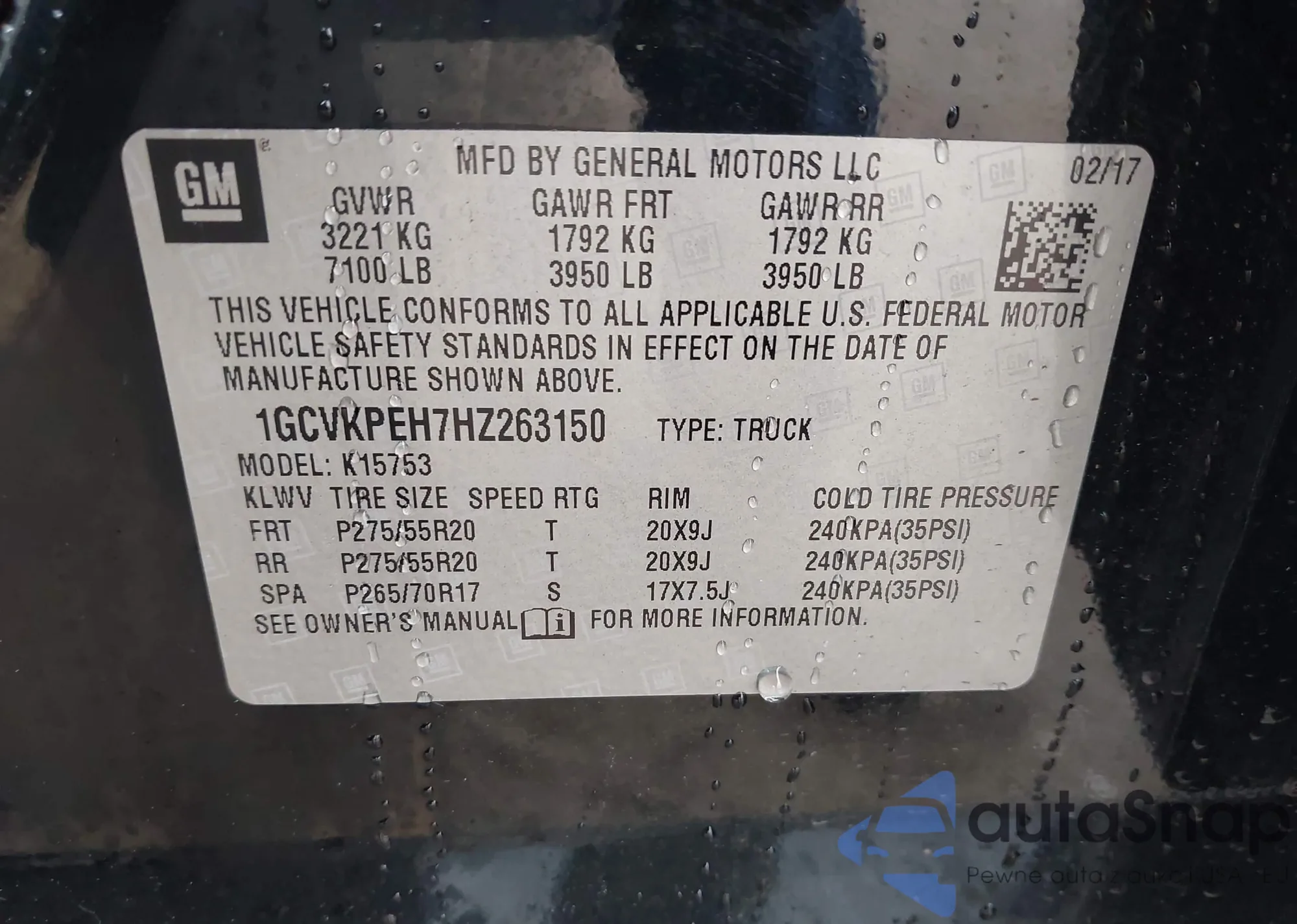 LOT: 44028246 VIN: 1FTEW1C85HKC48918