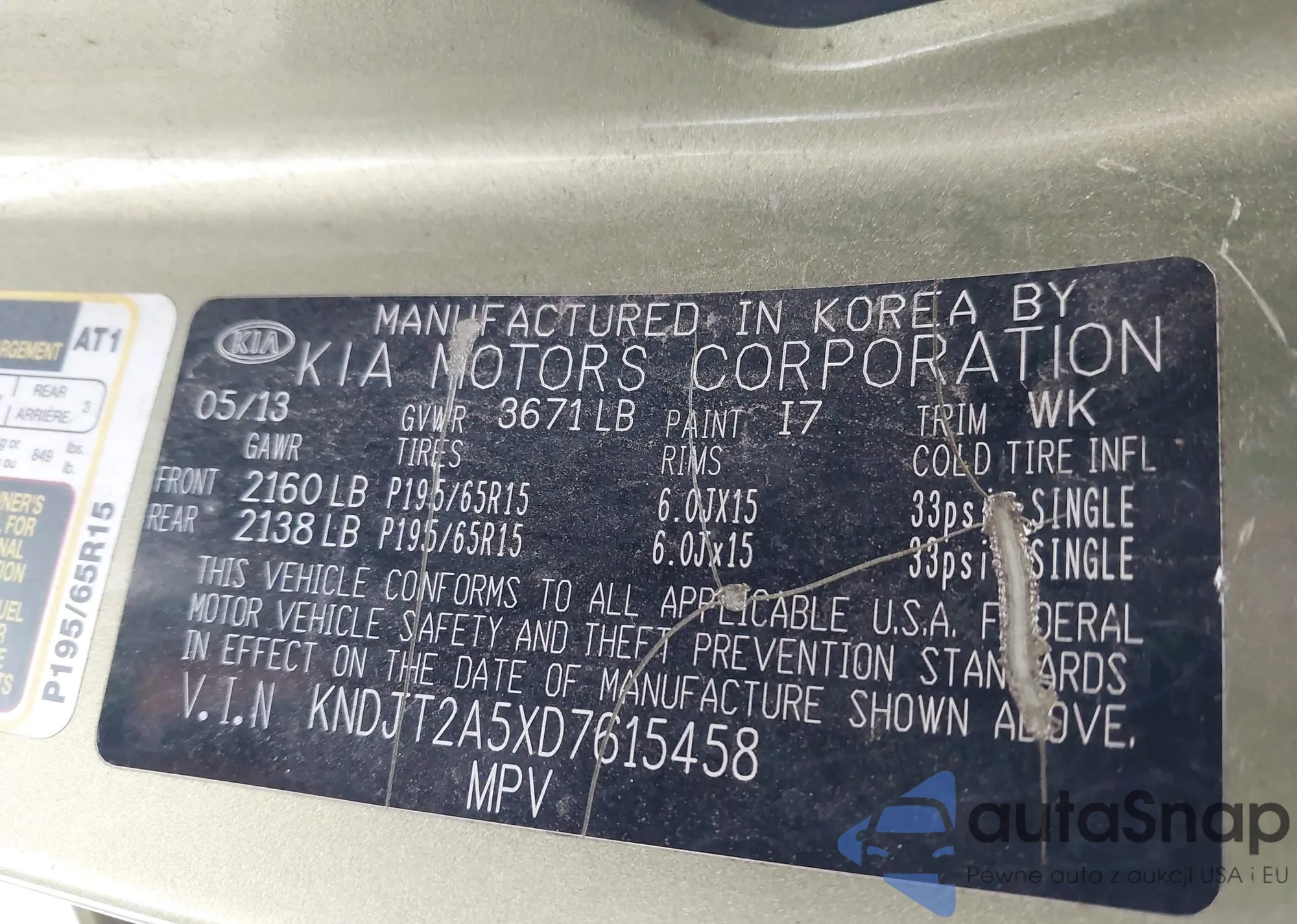 • VIN KNDJT2A5XD7615458