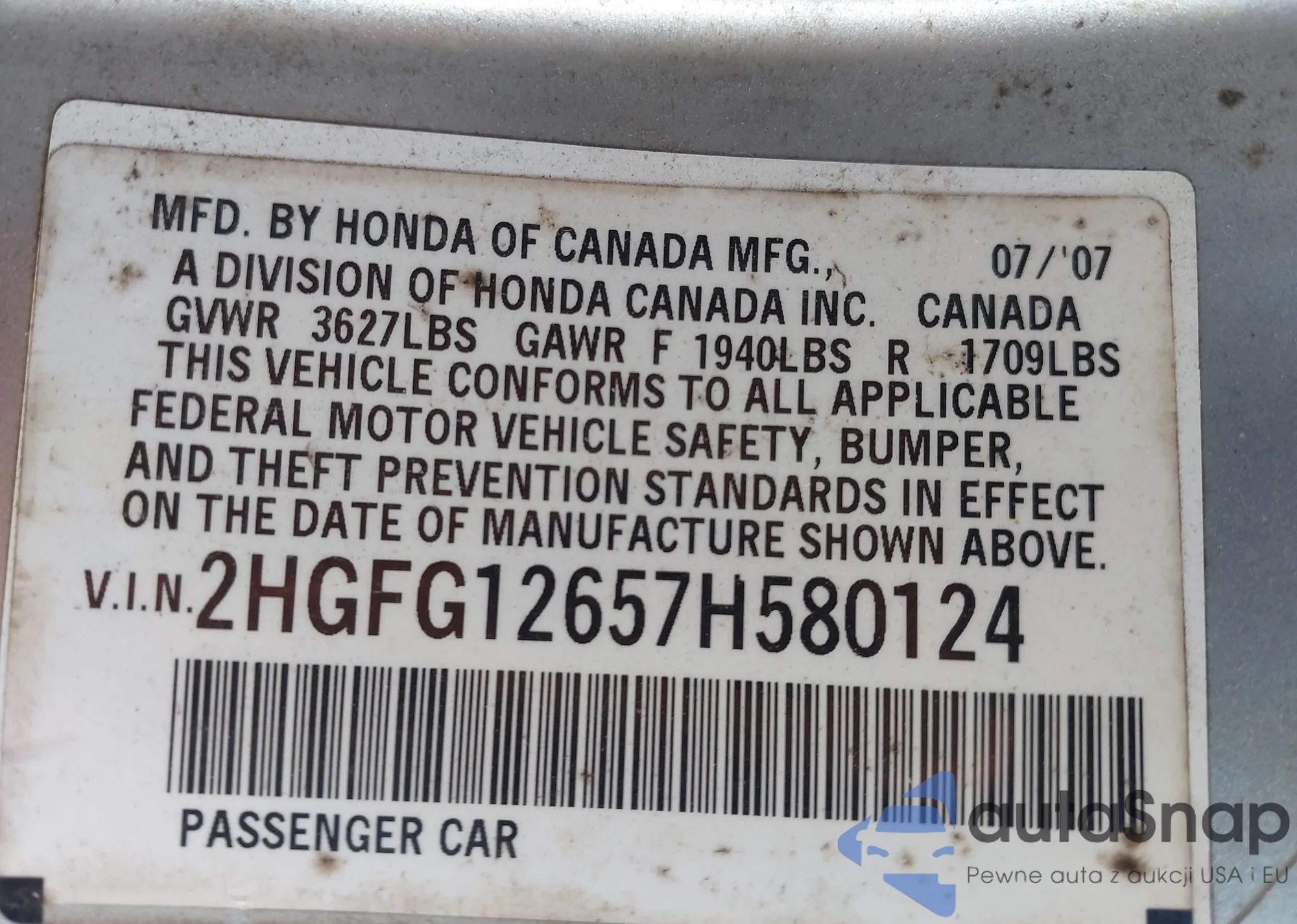 • VIN 2HGFG12657H580124