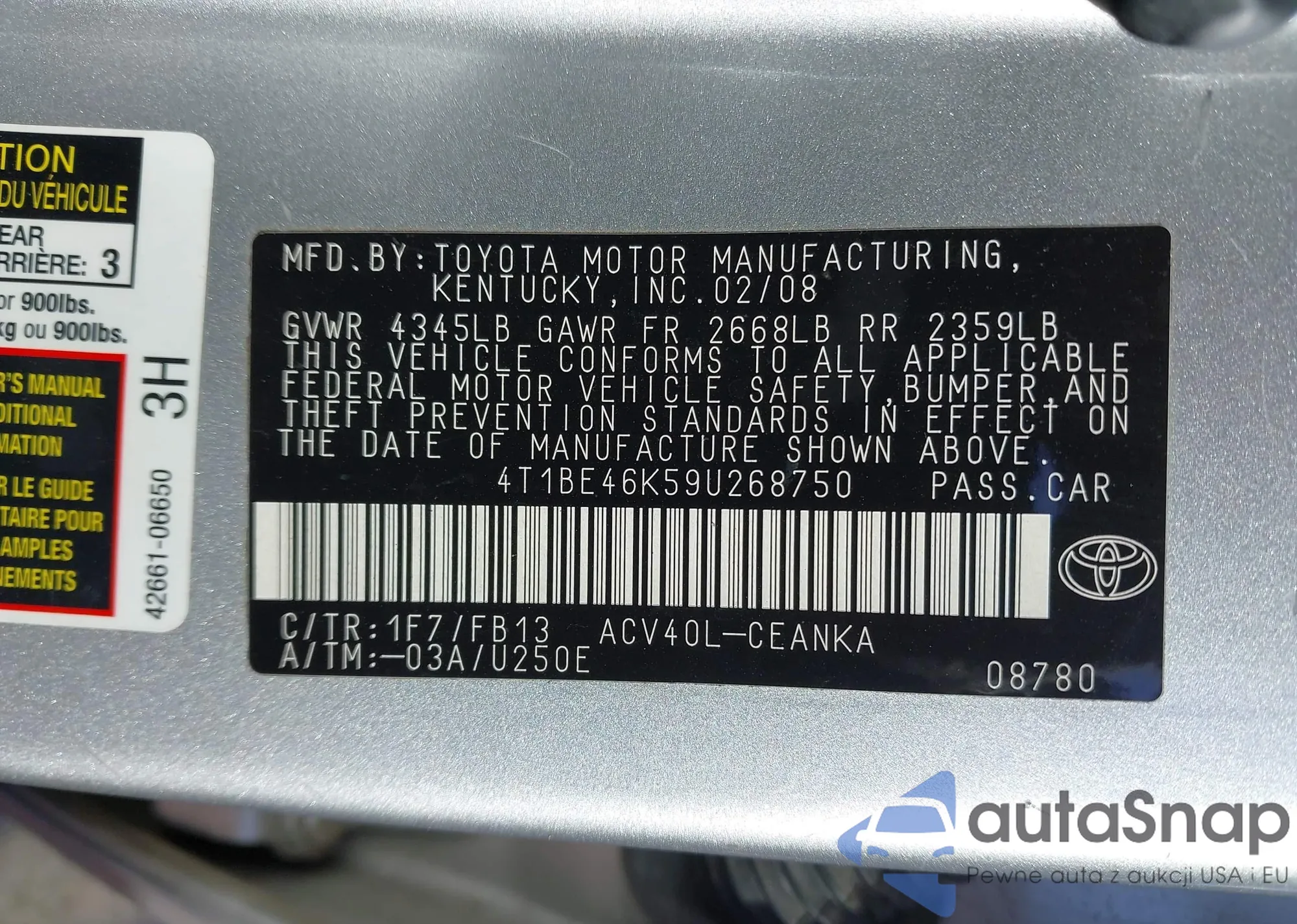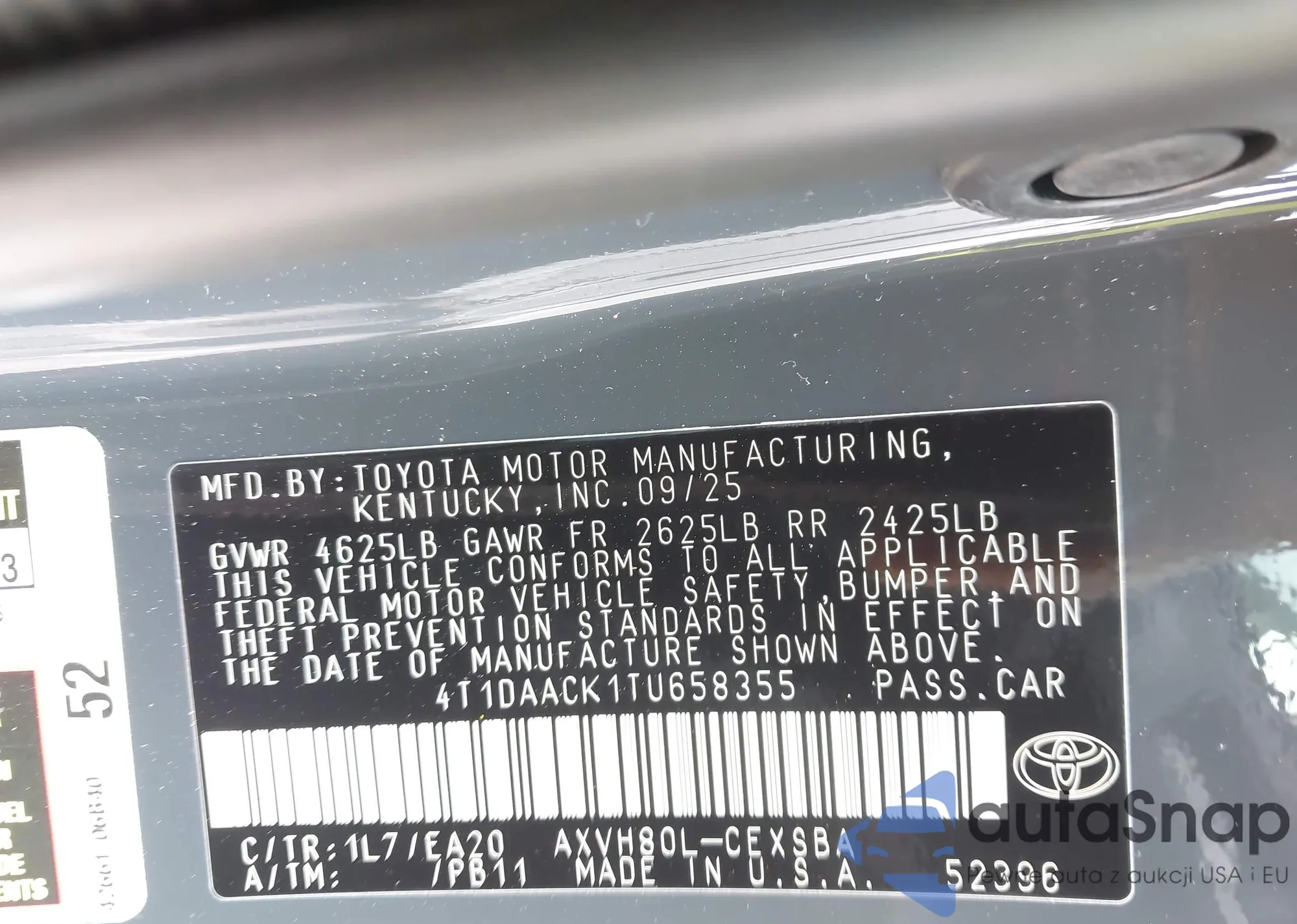 • VIN 4T1DAACK1TU658355