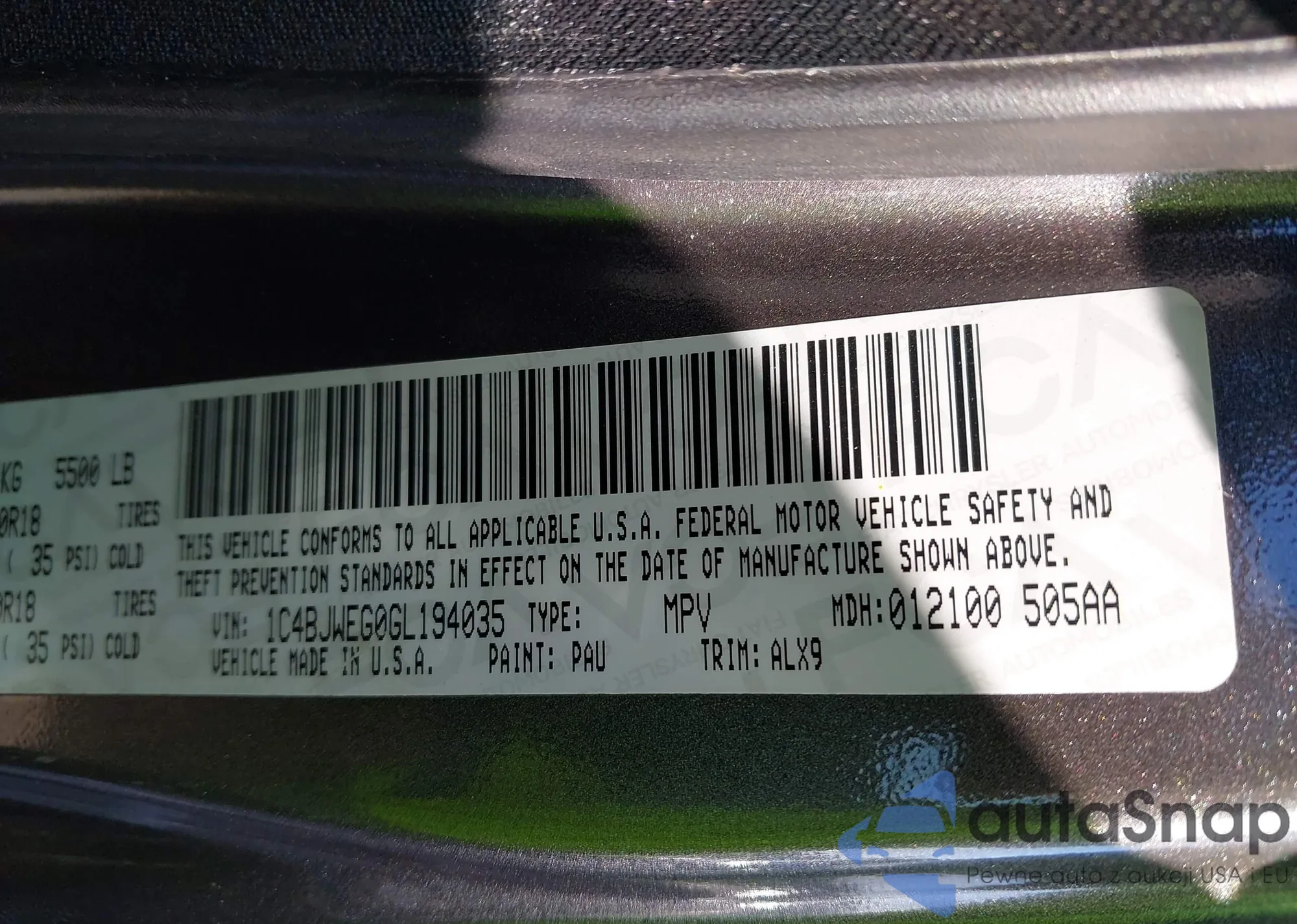 • VIN 1C4BJWEG0GL194035
