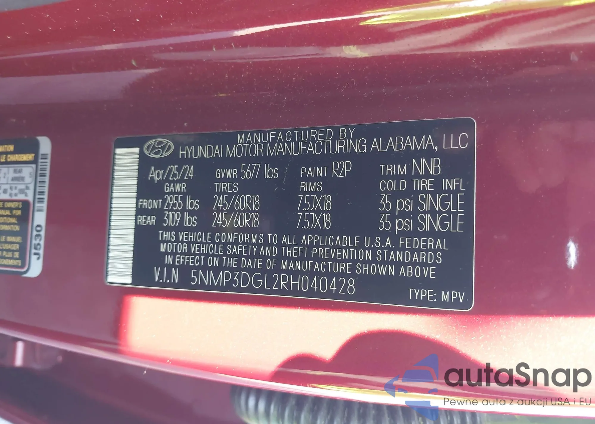 LOT: 43889970 VIN: 5NMP3DGL2RH040428