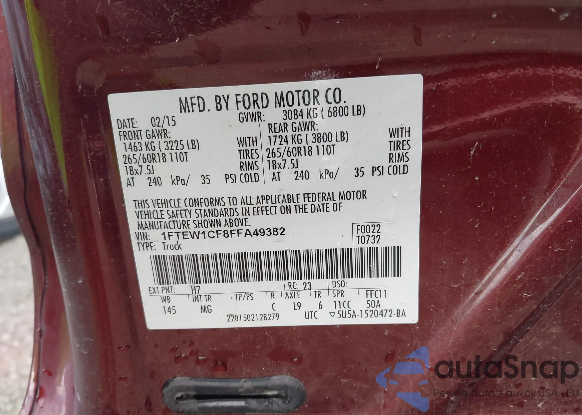 LOT: 43870552 VIN: 1FTEW1CF8FFA49382