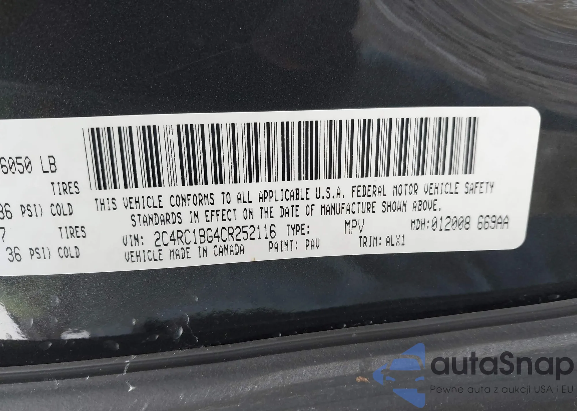 LOT: 43898665 VIN: 2C4RC1BG4CR252116