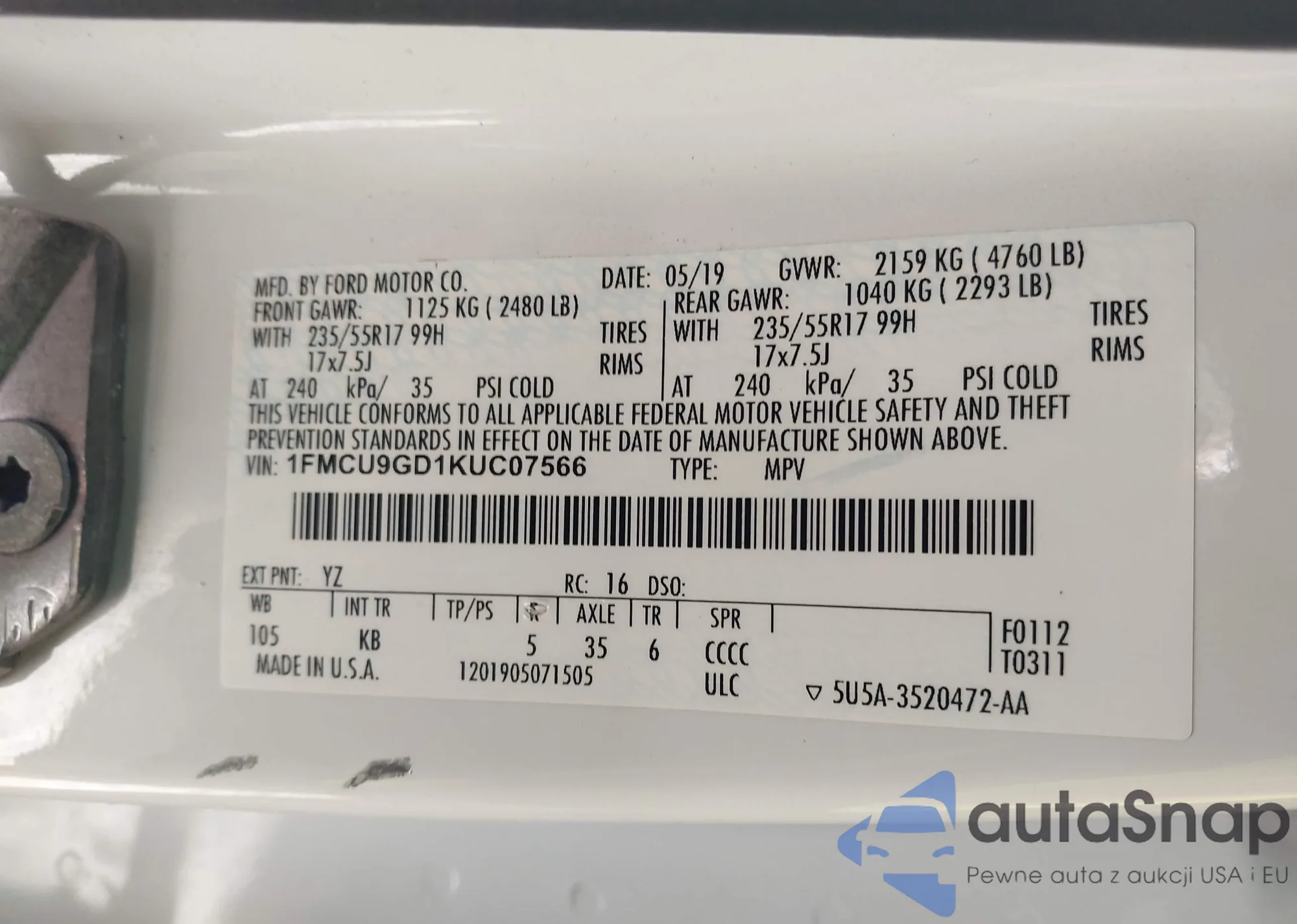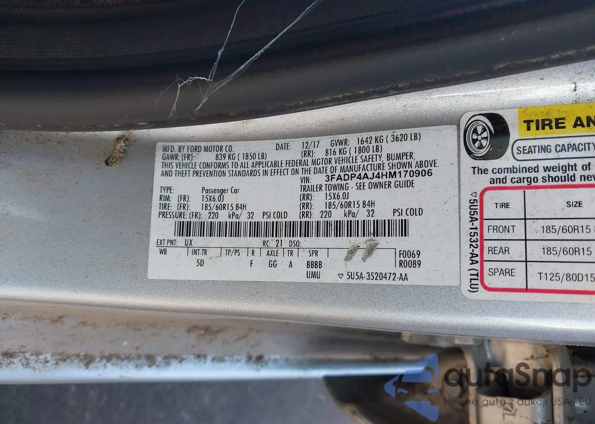 • VIN 3FADP4AJ4HM170906