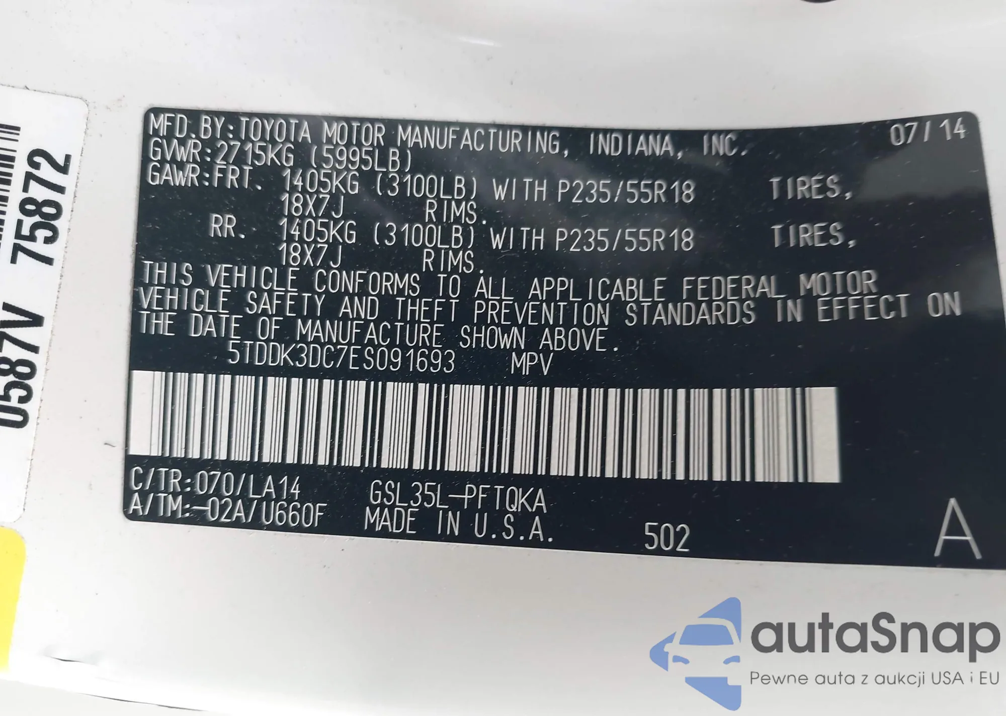 • VIN 4T3E6RFVXPU137951