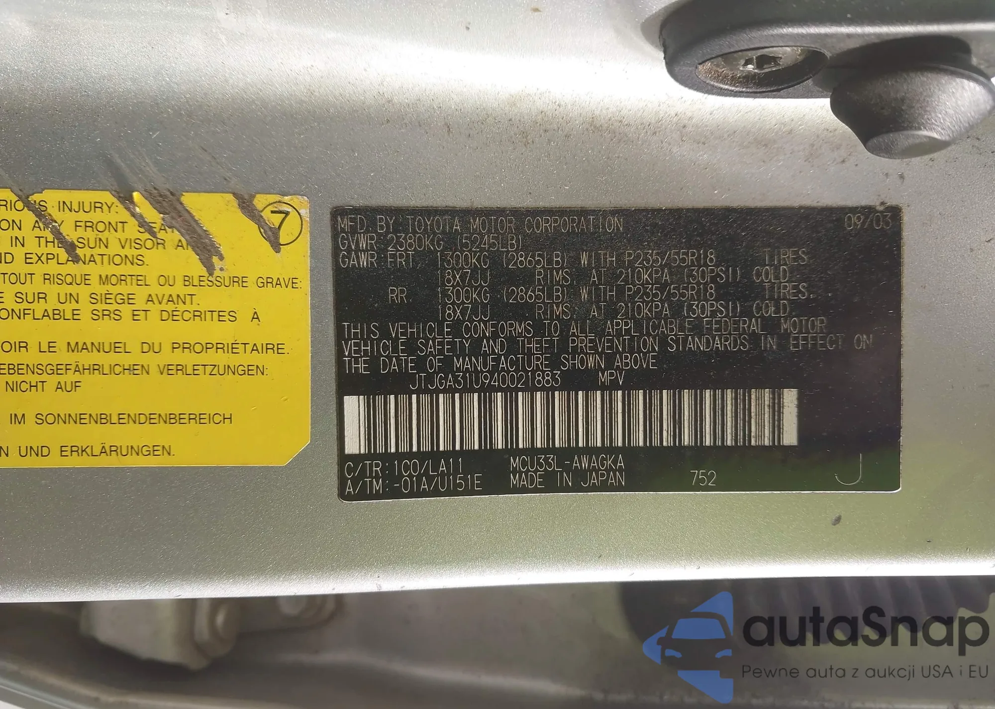 LOT: 44075206 VIN: JTJGA31U940021883