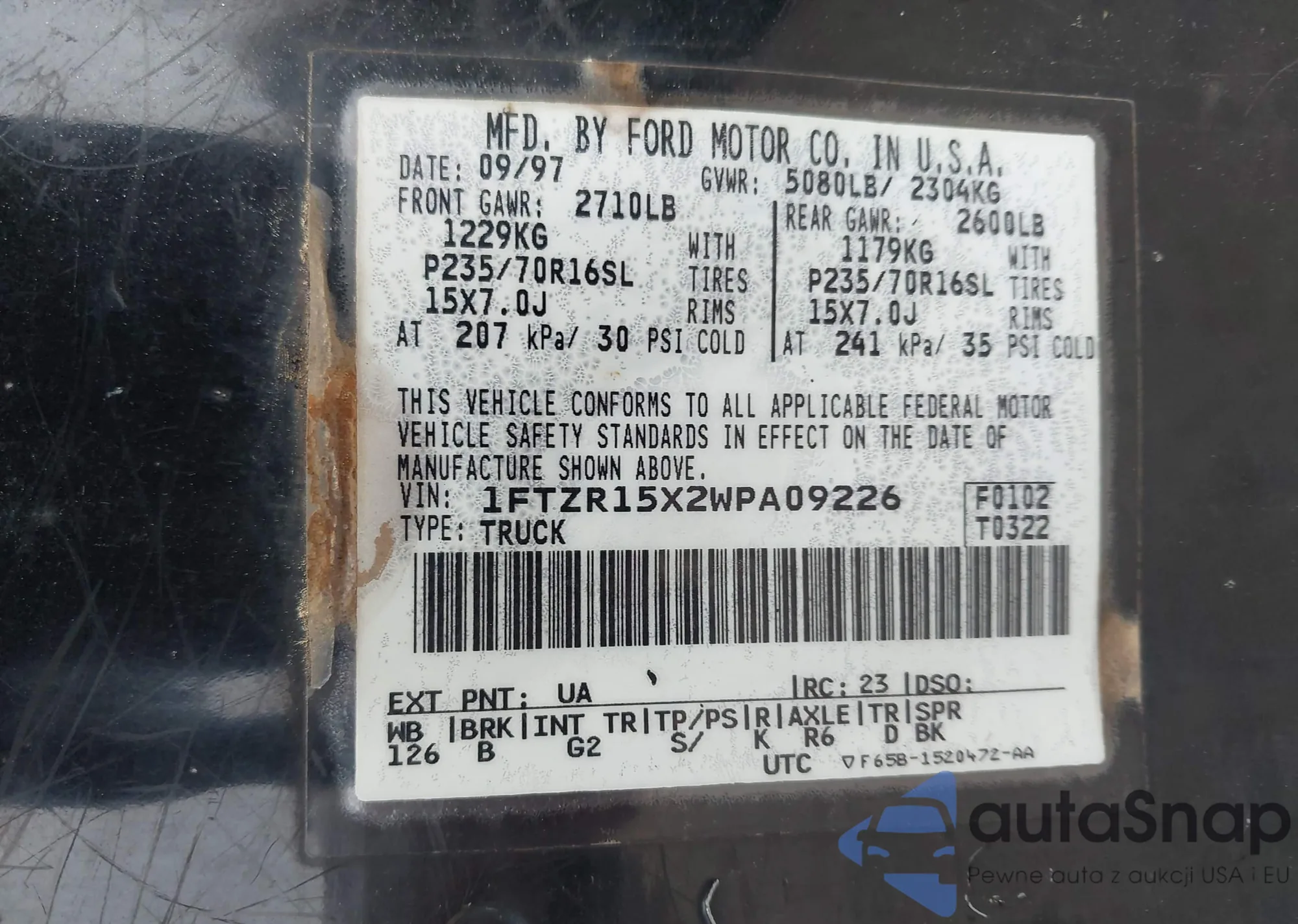 • VIN 1FTZR15X2WPA09226