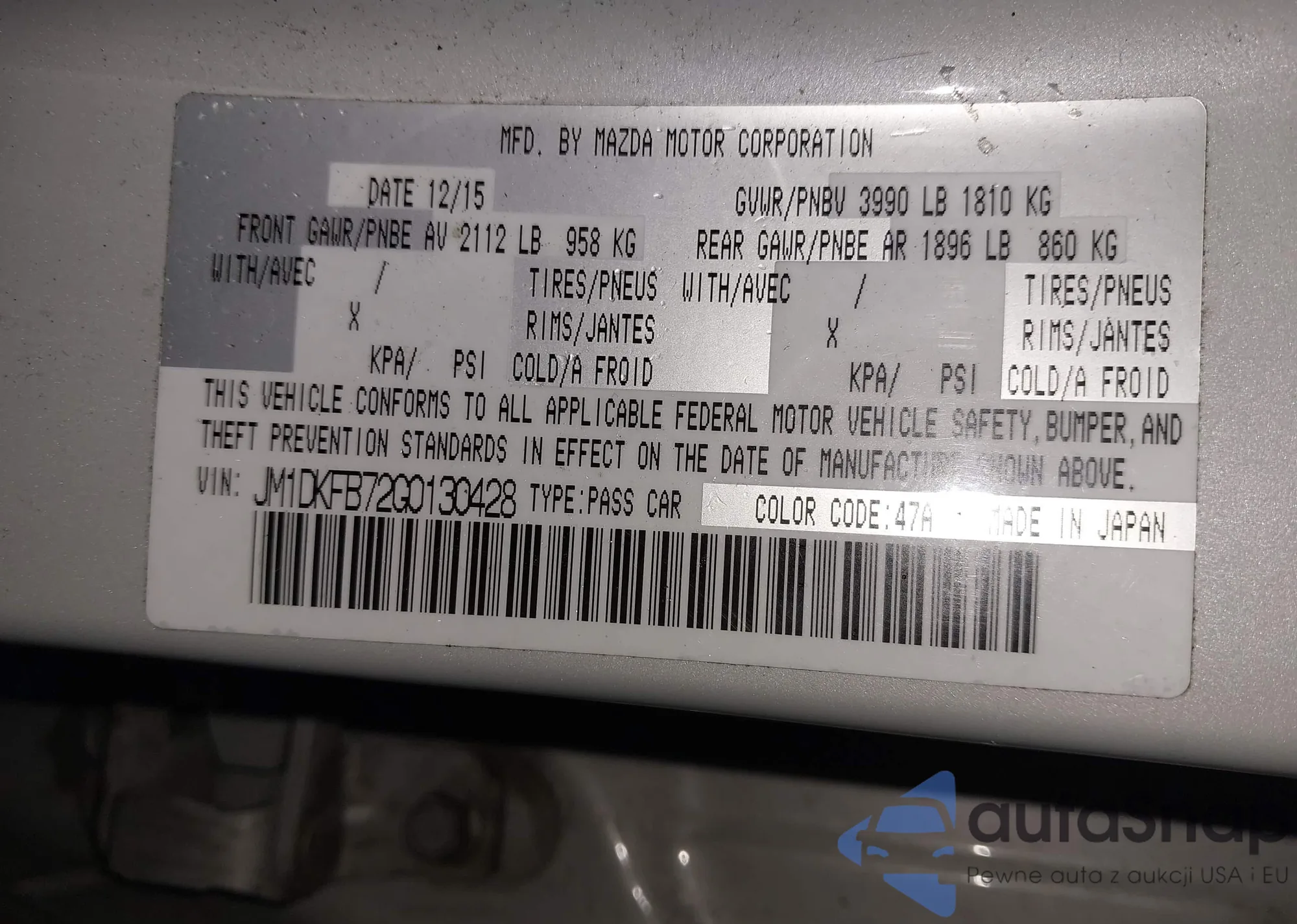 LOT: 44050444 VIN: JM1DKFB72G0130428