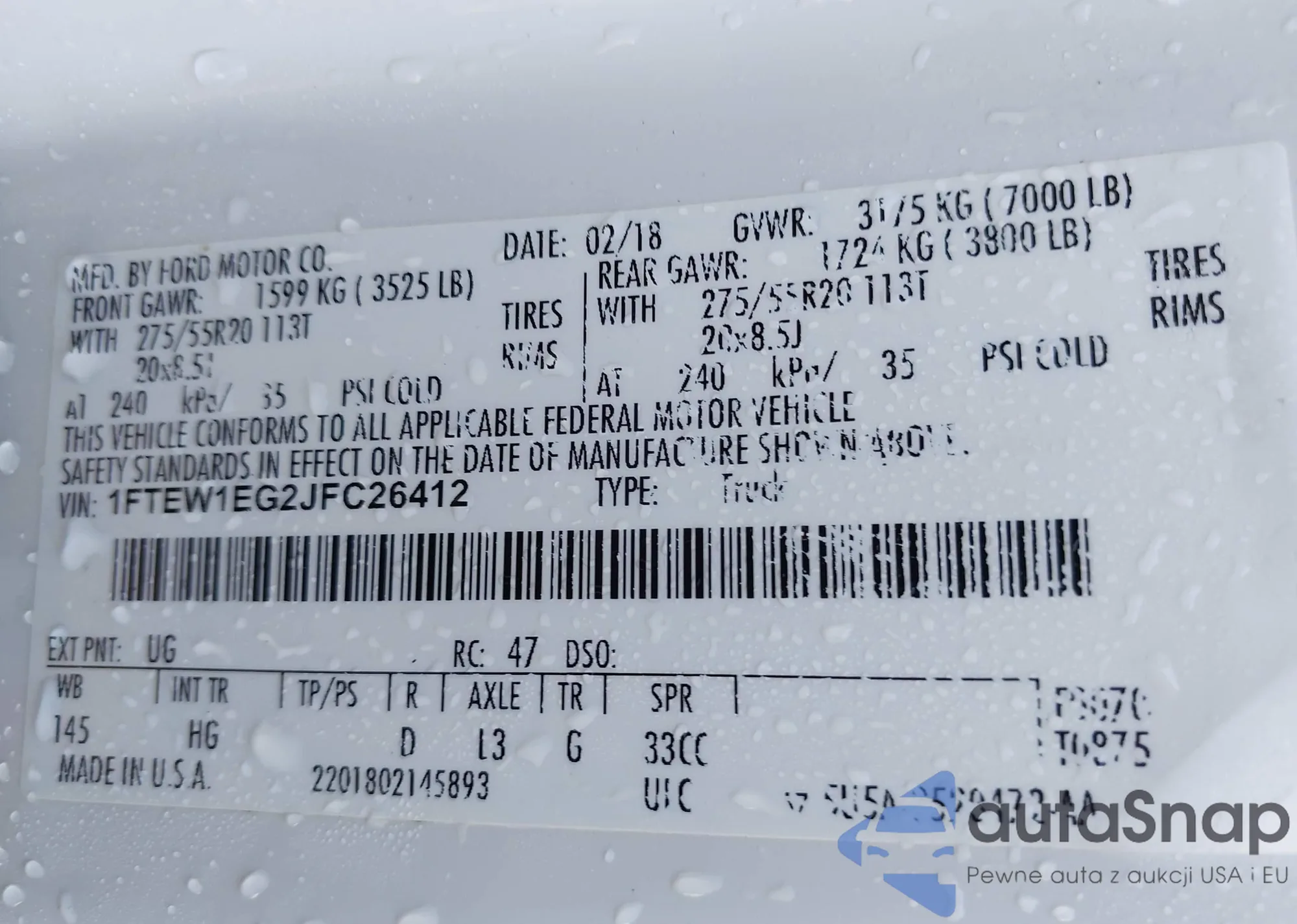 LOT: 43439715 VIN: 1FTEW1EG2JFC26412