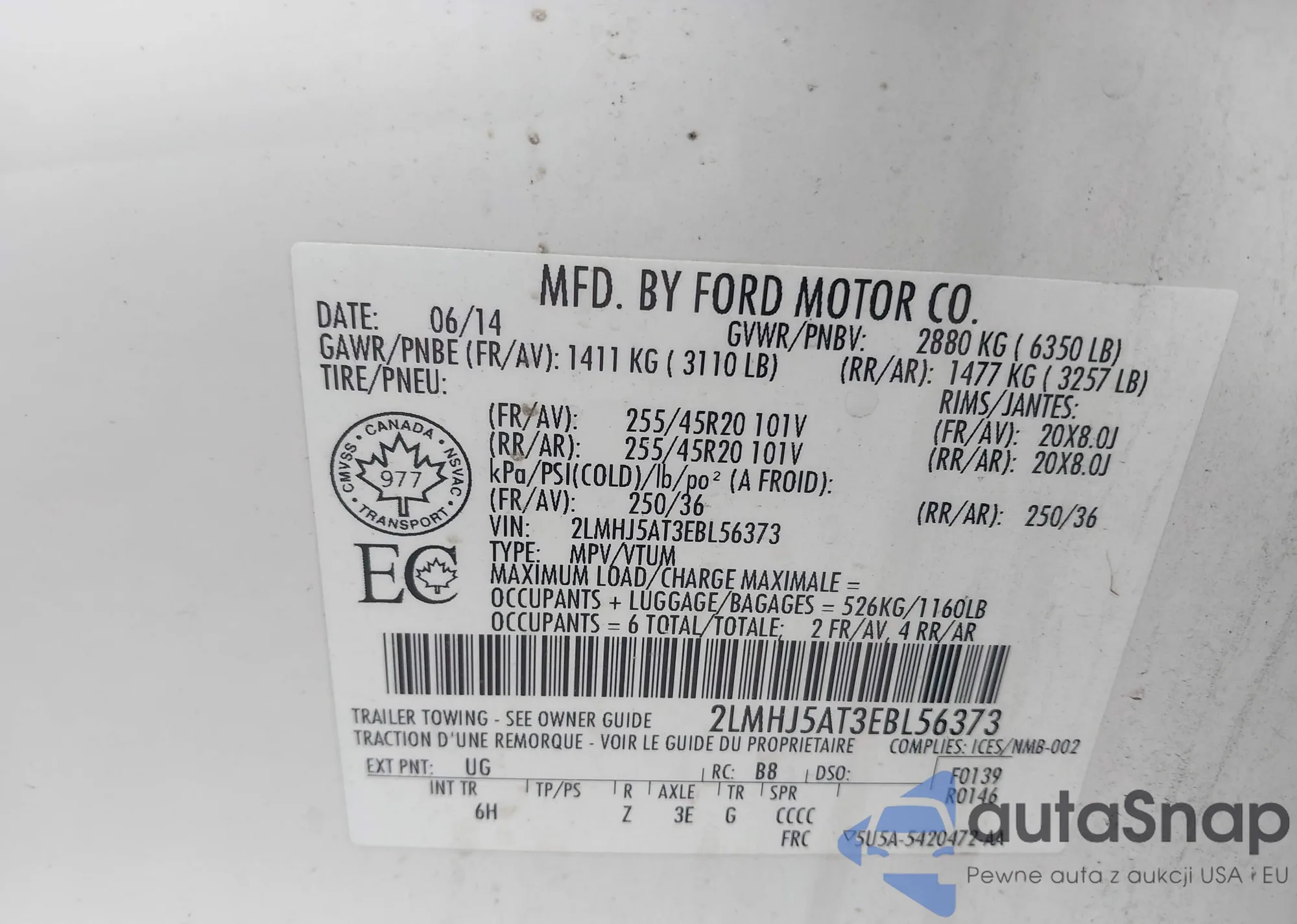 LOT: 44114109 VIN: 2FMDK3JC2ABB27379