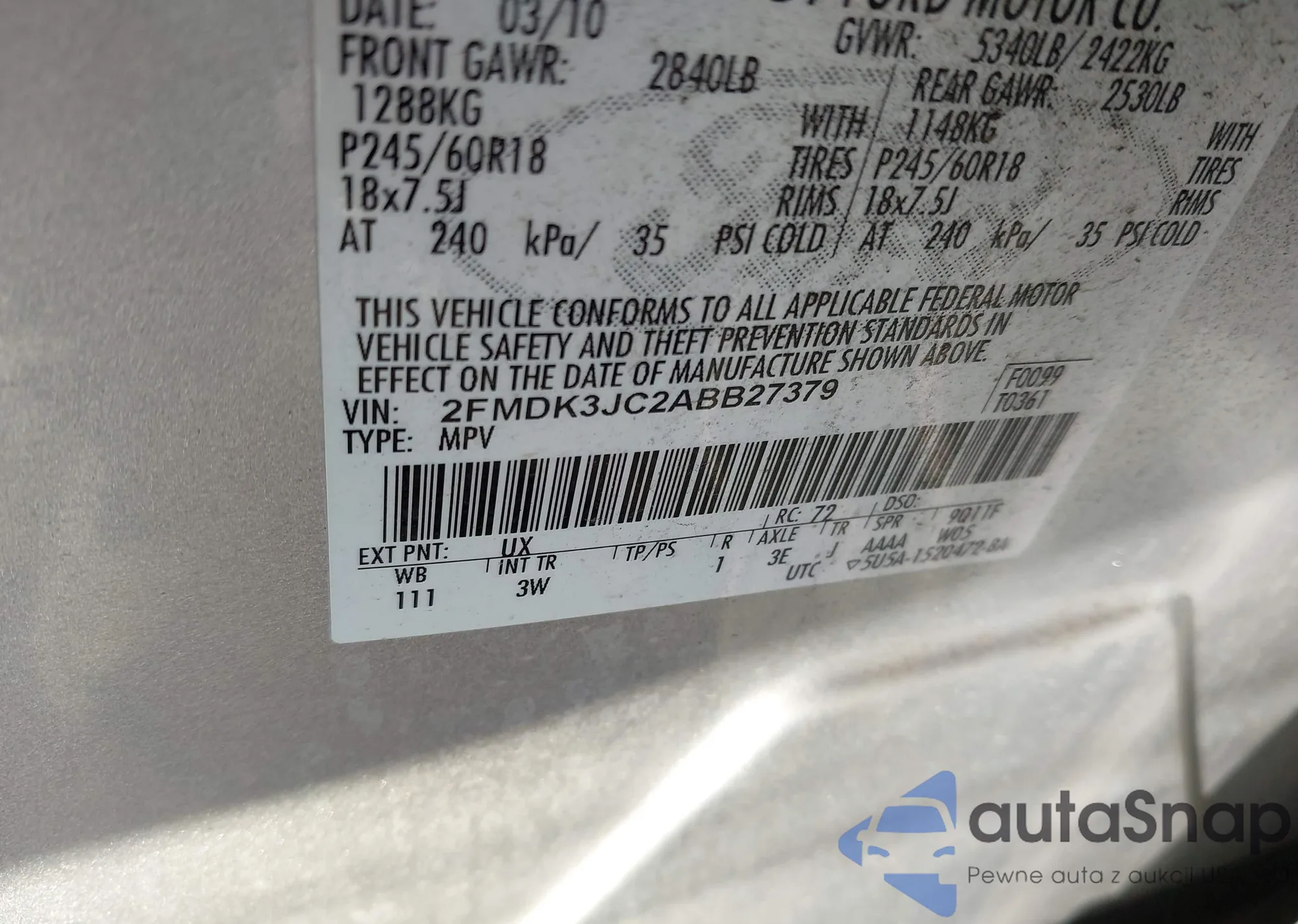 • VIN 2FMDK3JC2ABB27379