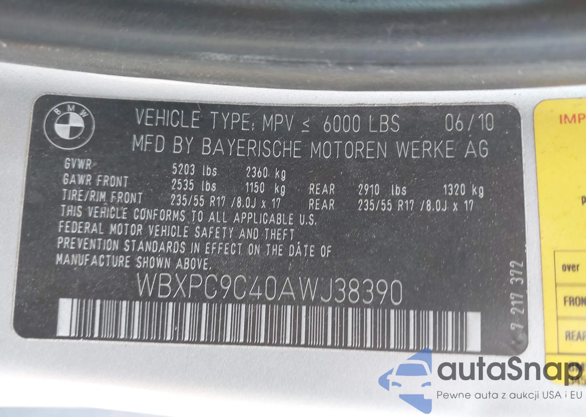 LOT: 42526293 VIN: WBXPC9C40AWJ38390