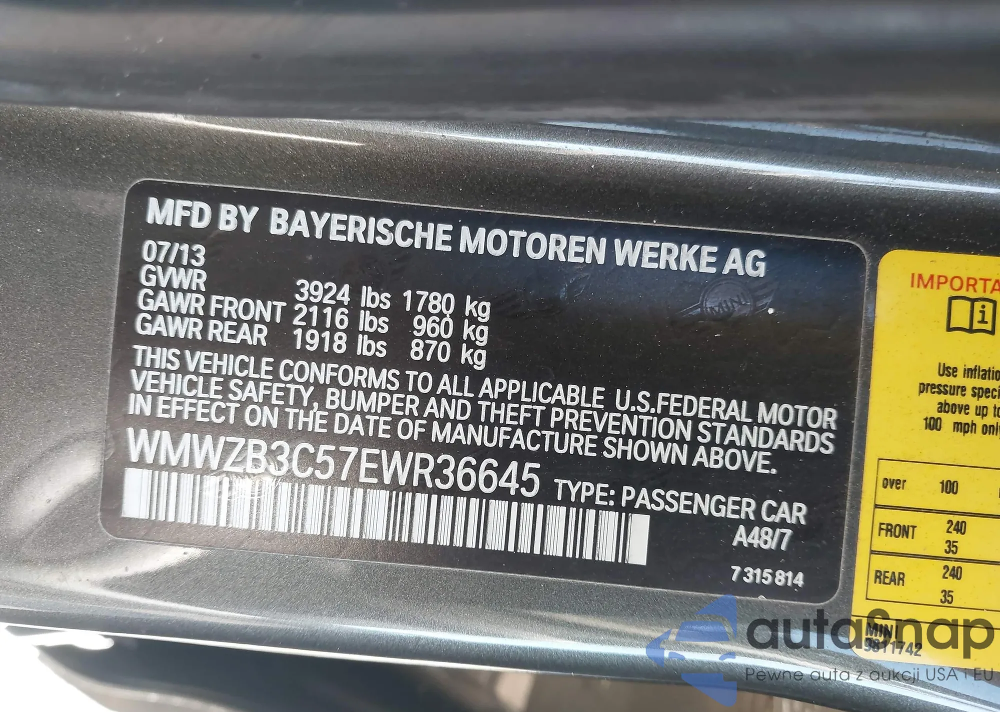 • VIN WMWZB3C57EWR36645