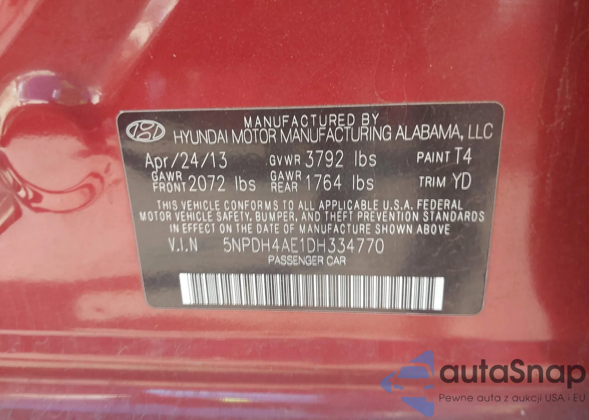 • VIN 5NPDH4AE1DH334770