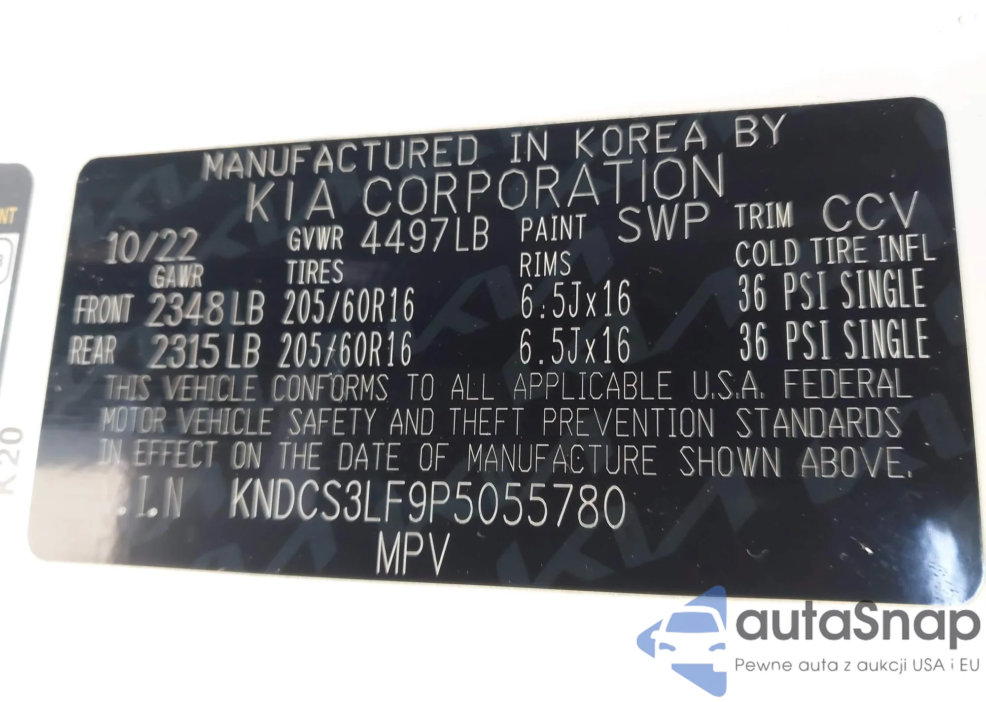 LOT: 43230982 VIN: KNDCS3LF9P5055780
