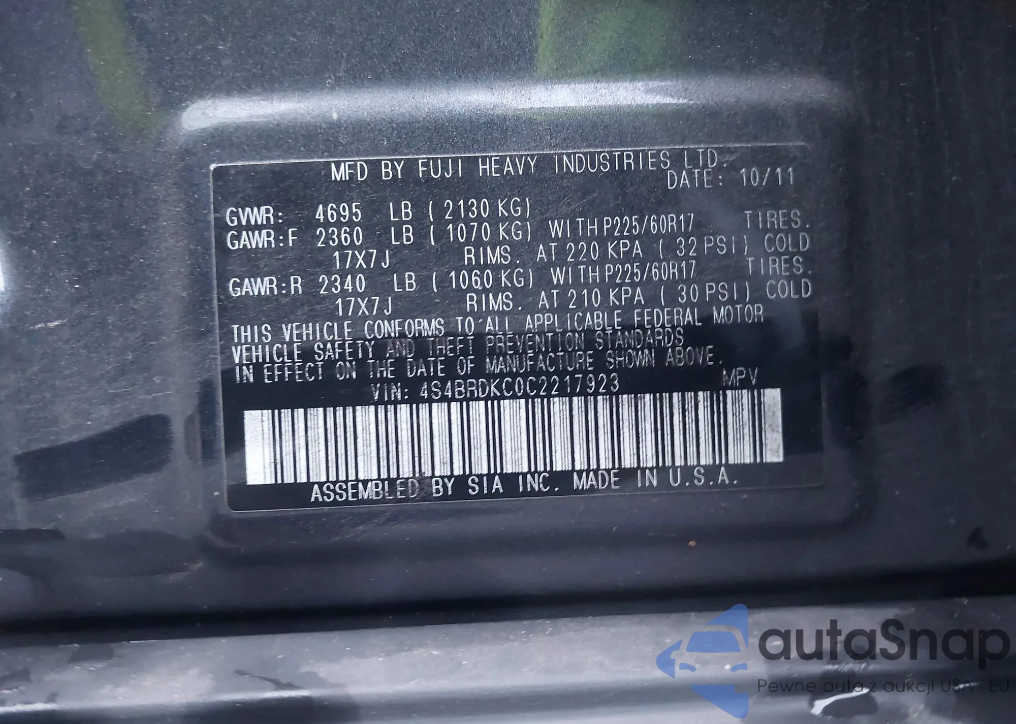 • VIN 4S4BRDKC0C2217923