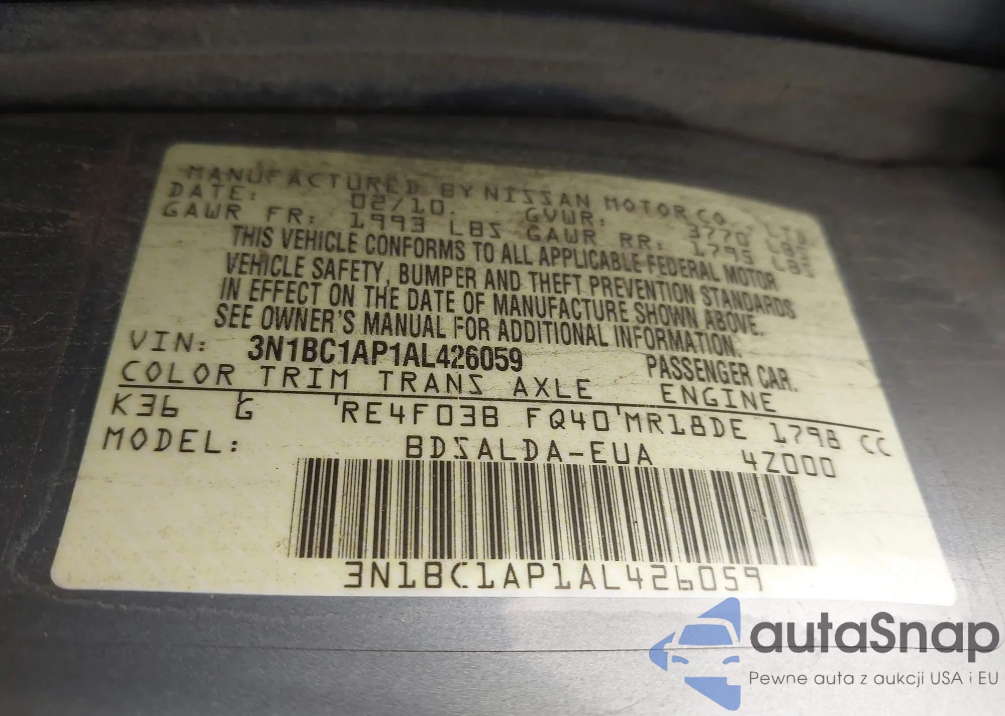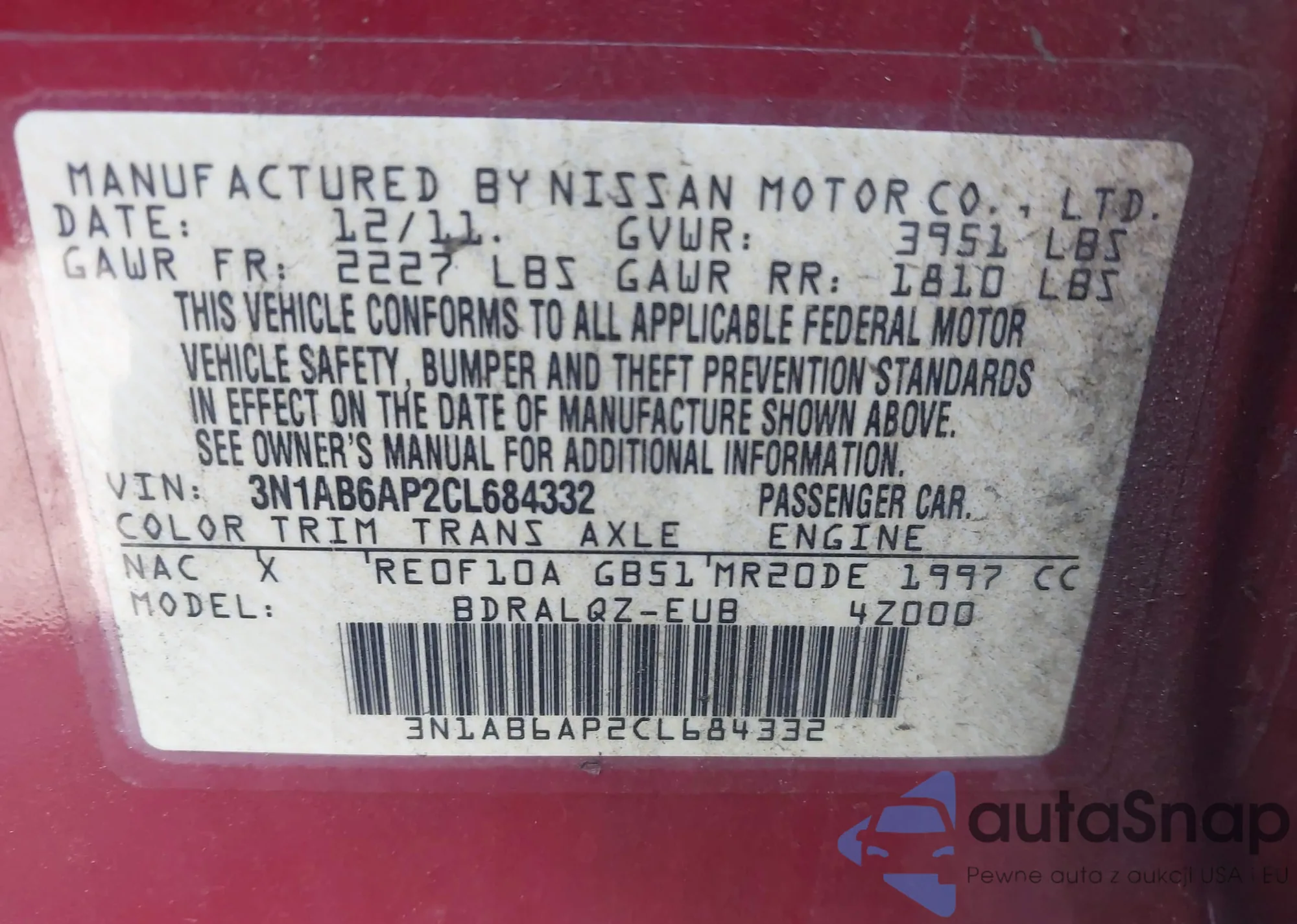 • VIN 3N1AB6AP2CL684332