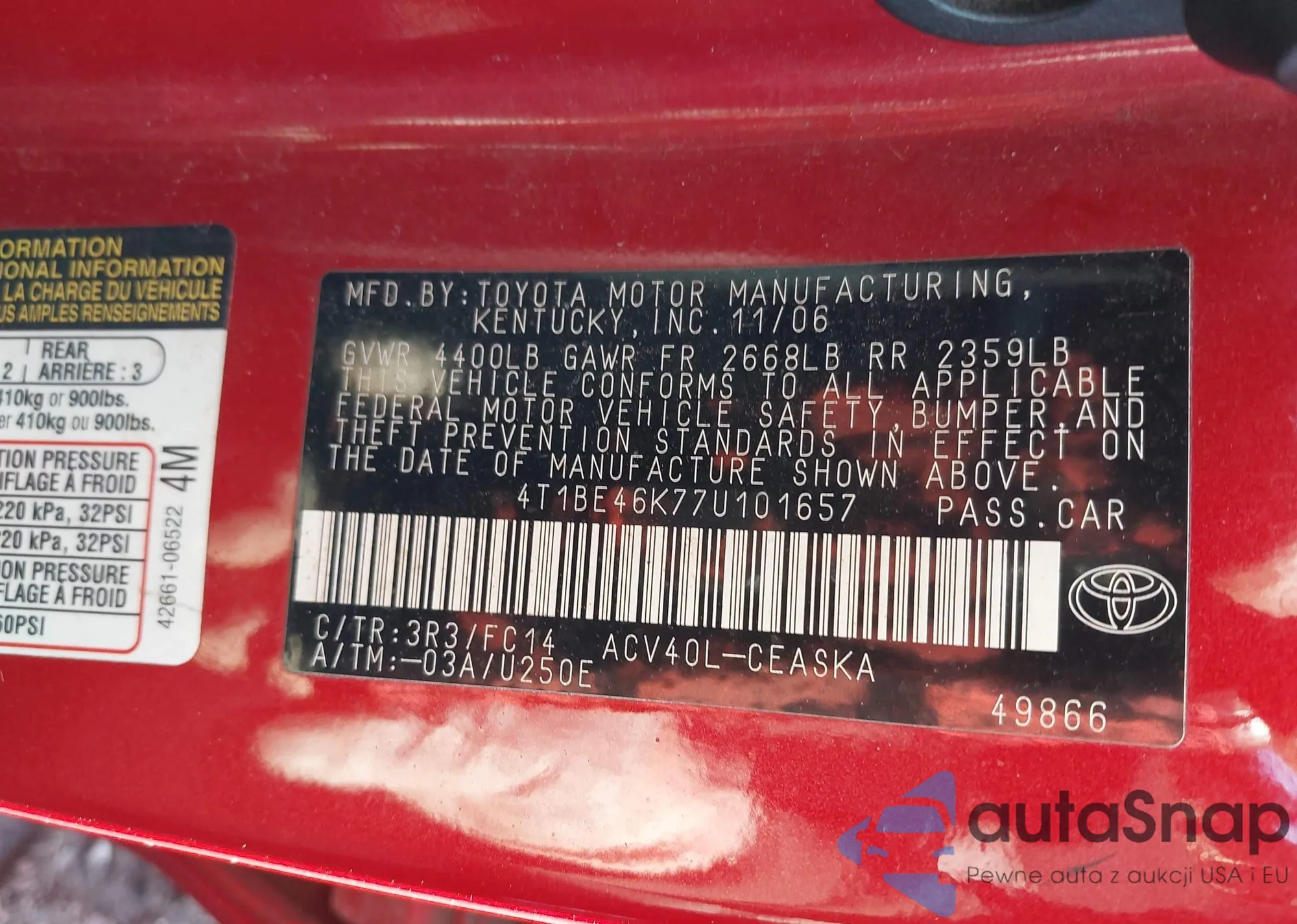• VIN 4T1BF1FK7FU905323