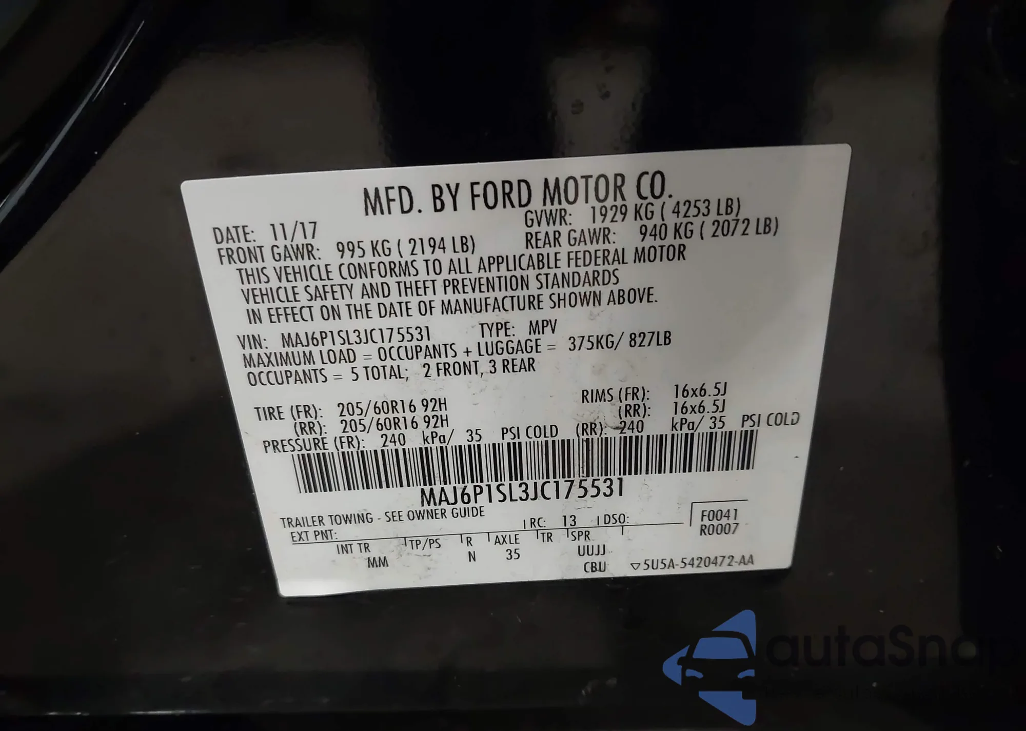 LOT: 43900917 VIN: KNDJP3A51E7000776