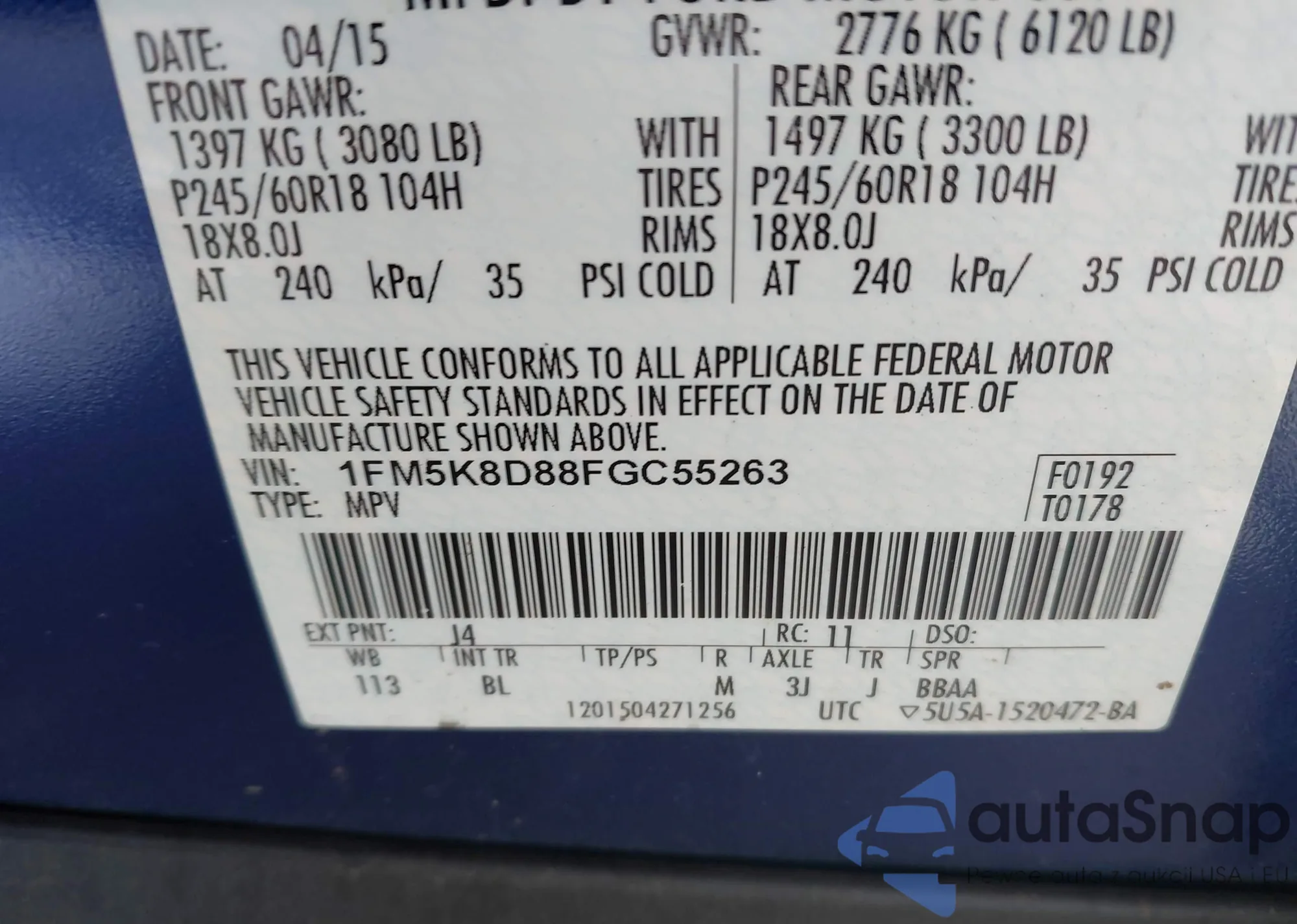 • VIN 1FM5K8D88FGC55263