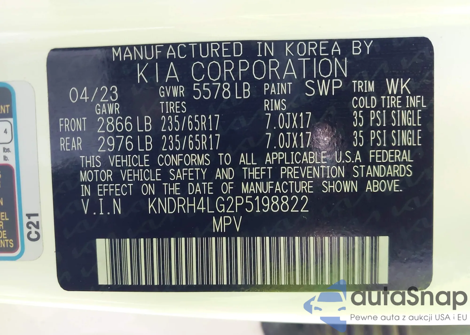 • VIN KNDRH4LG2P5198822
