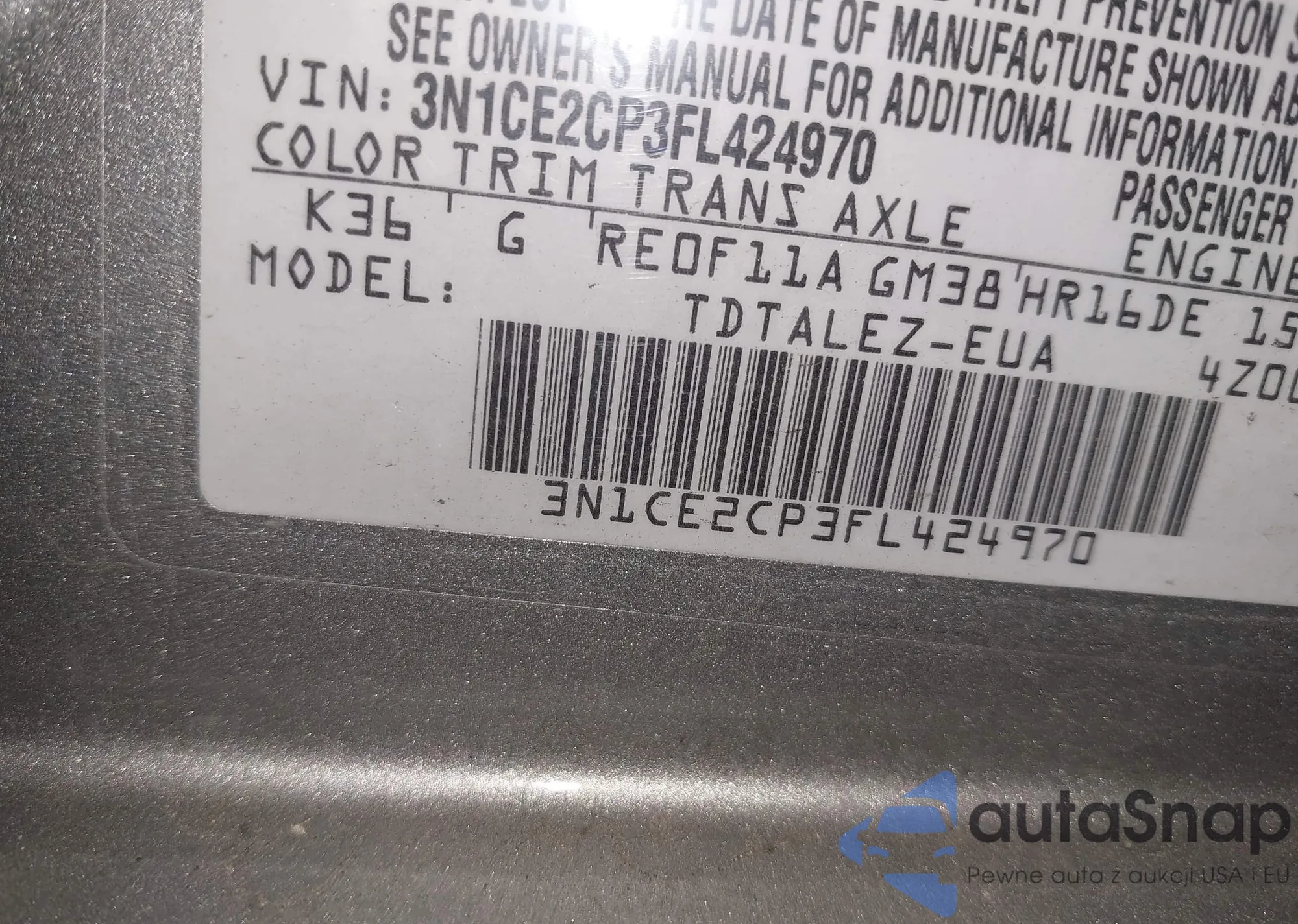 • VIN 4T1BF1FK4HU410807