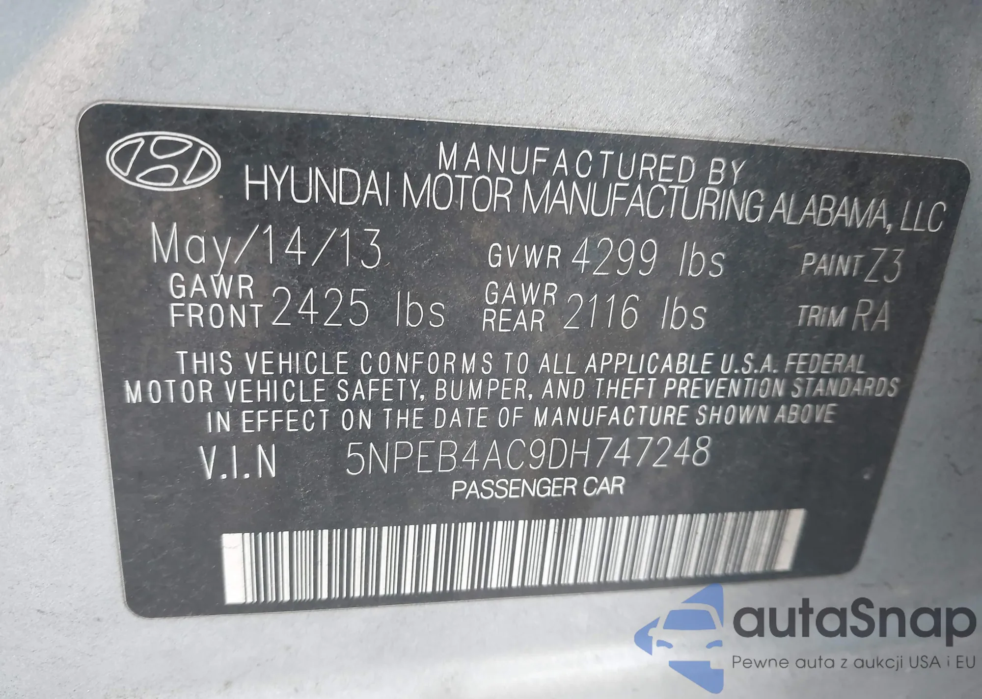 • VIN 5NPEB4AC9DH747248