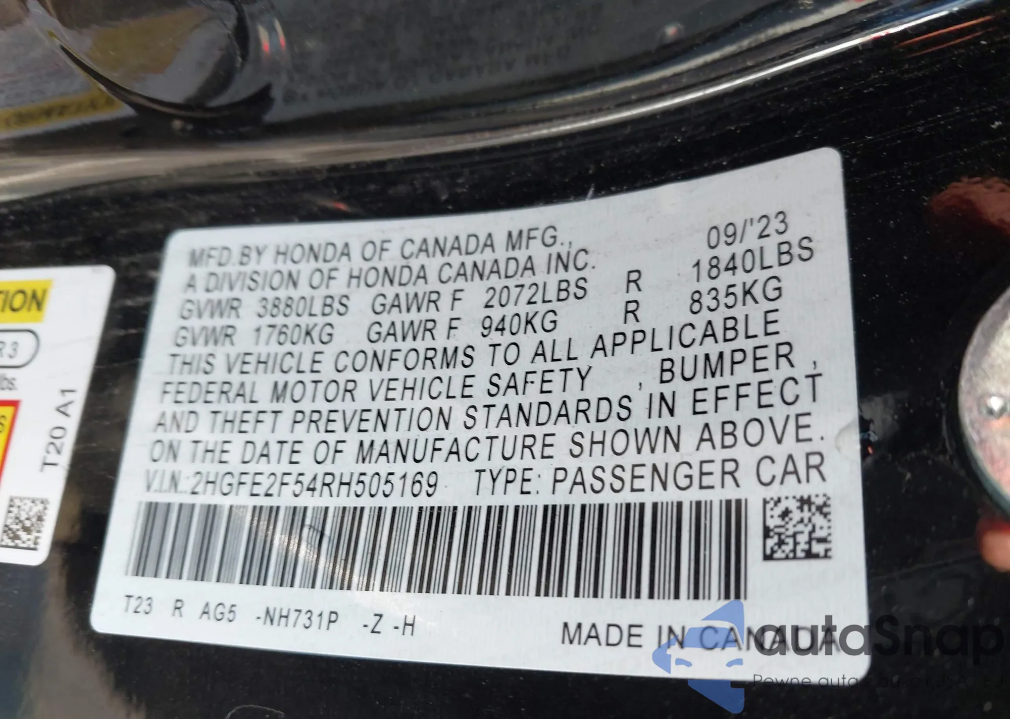 • VIN 2HGFE2F54RH505169