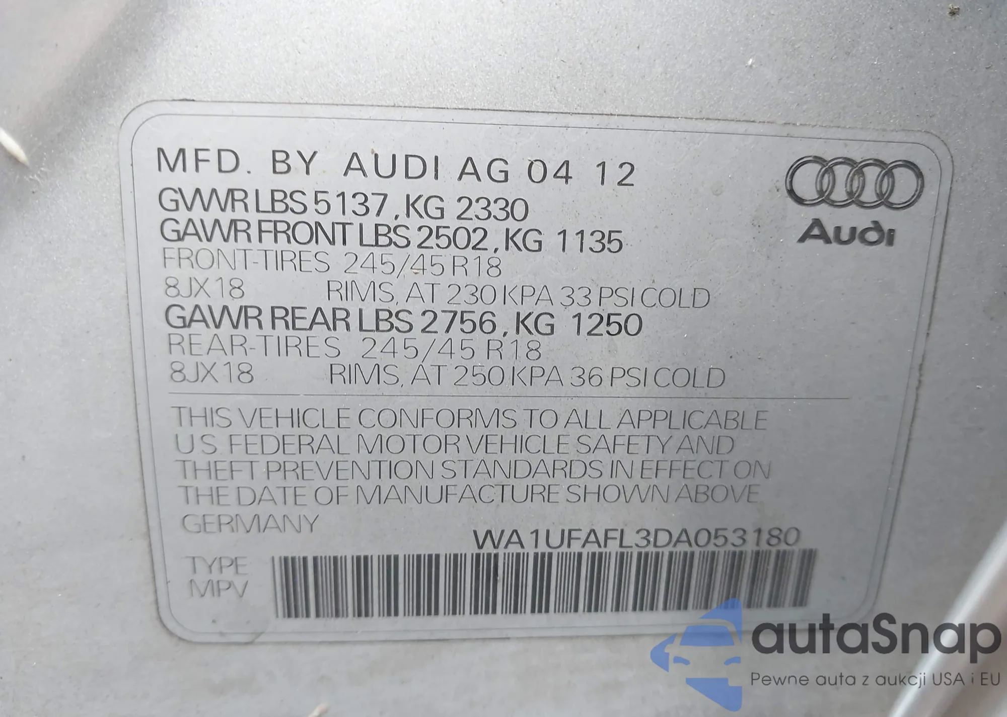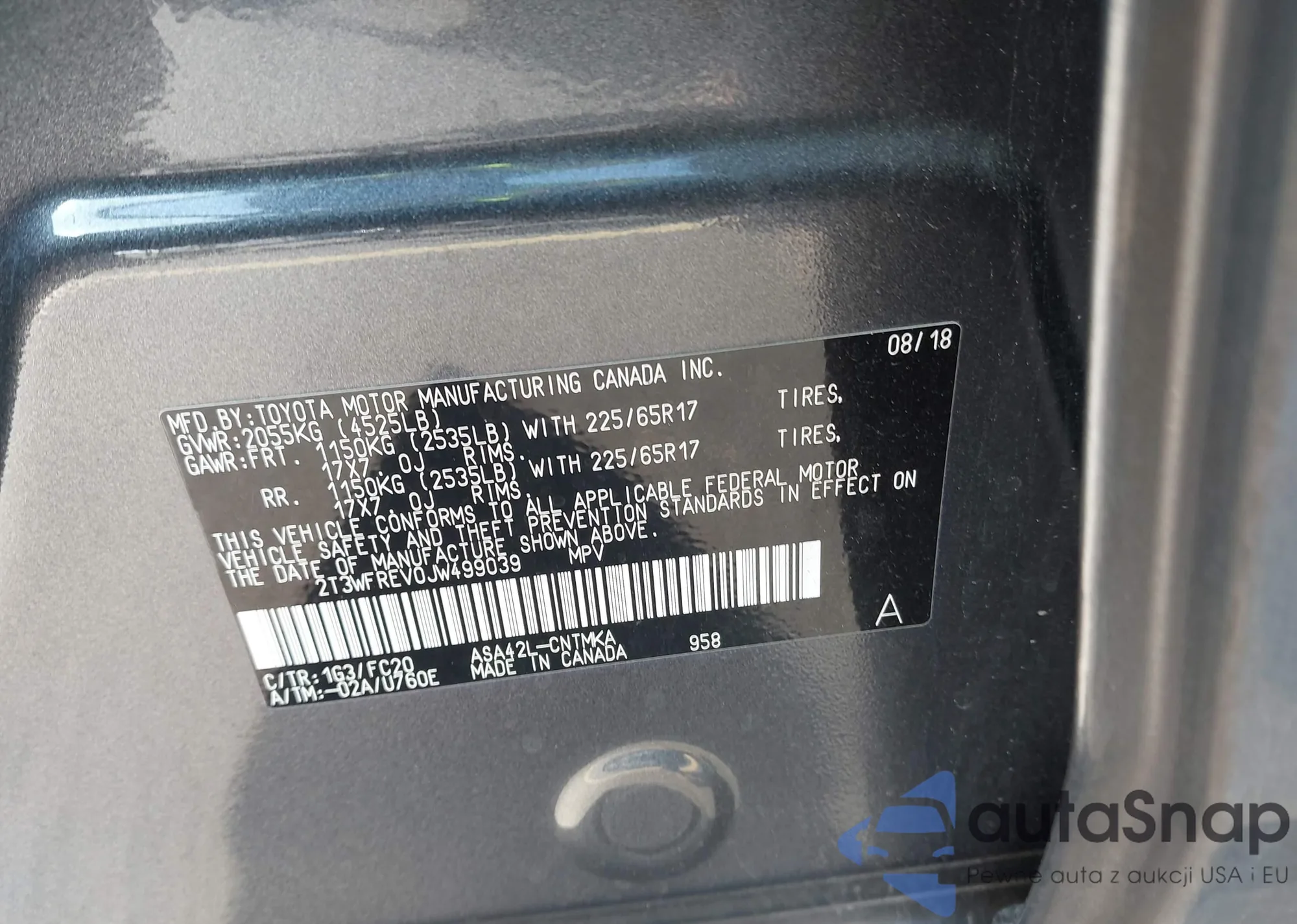 LOT: 43742265 VIN: 2T3WFREV0JW499039