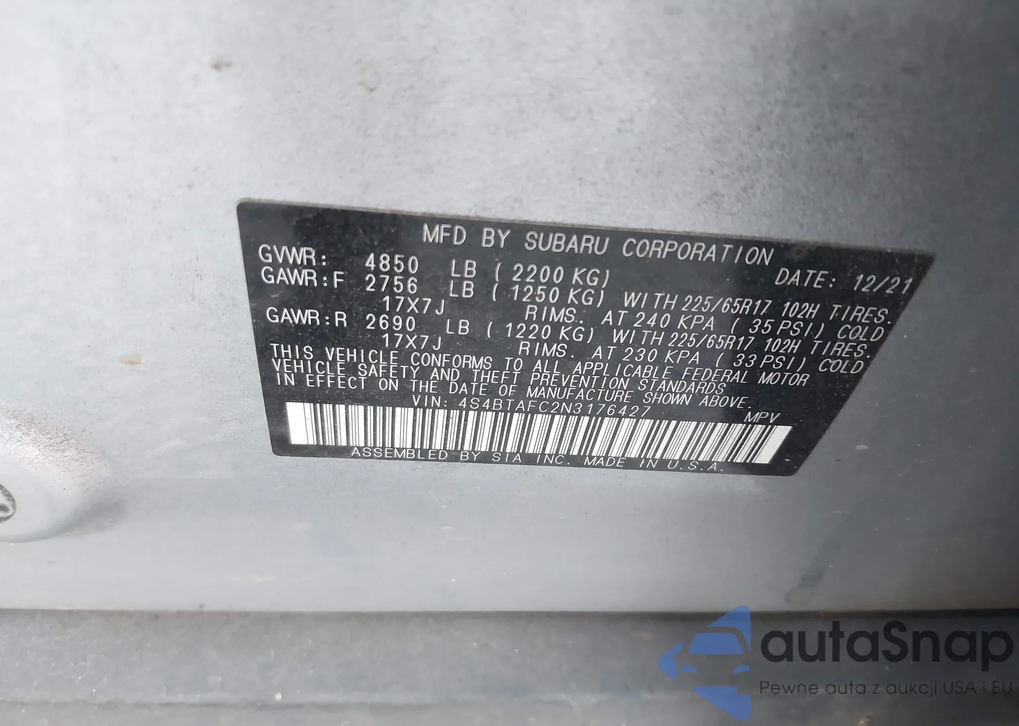 • VIN 4S4BTAFC2N3176427