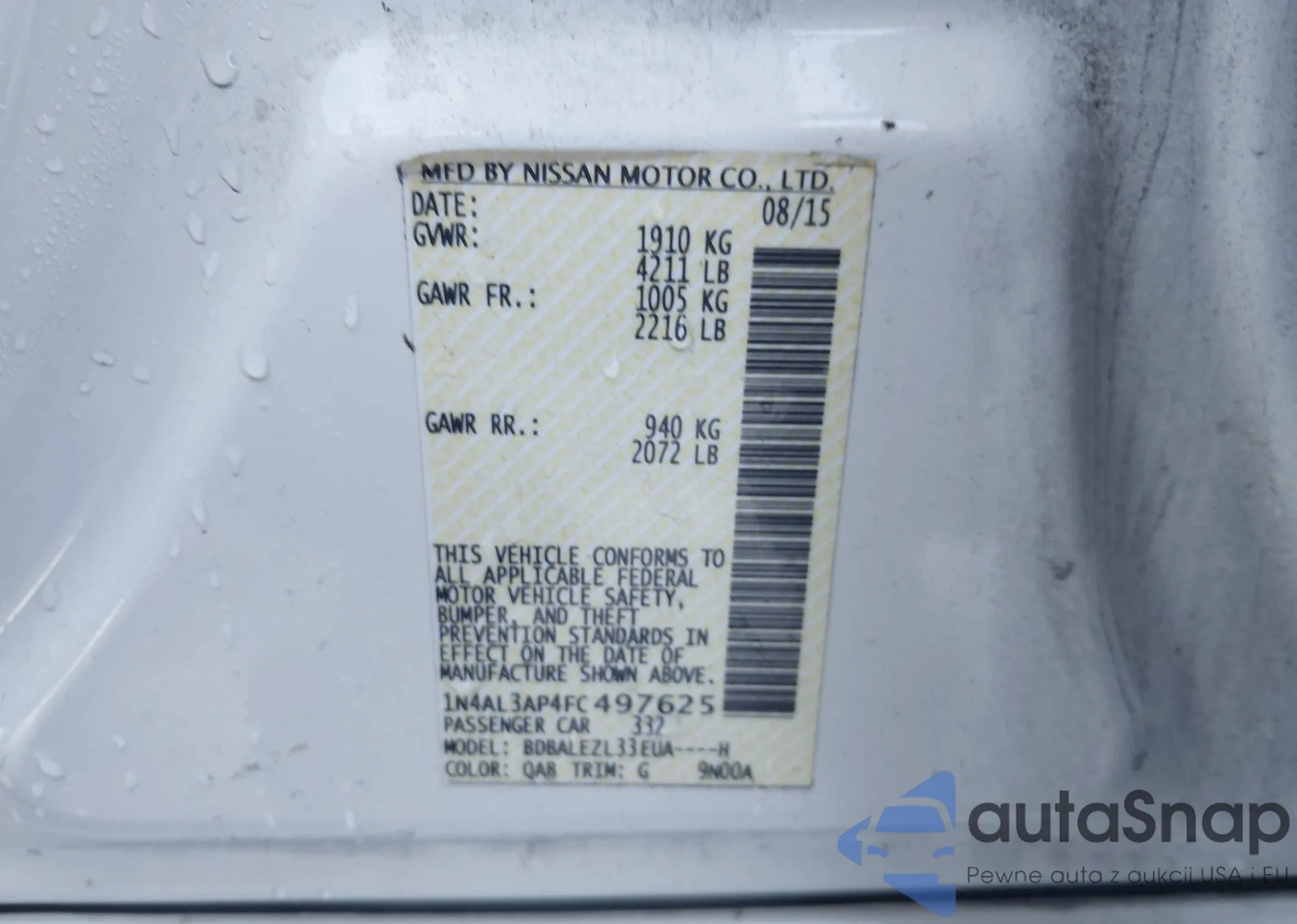 LOT: 43784776 VIN: 1N4AL3AP4FC497625