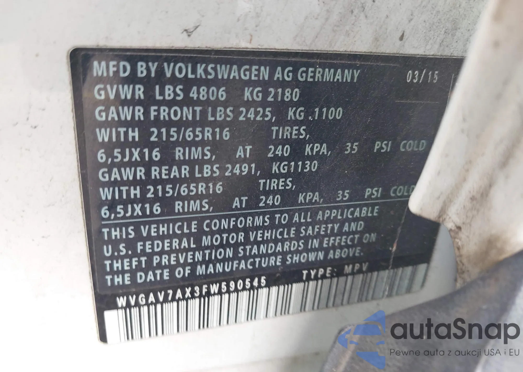 • VIN WVGAV7AX3FW590545