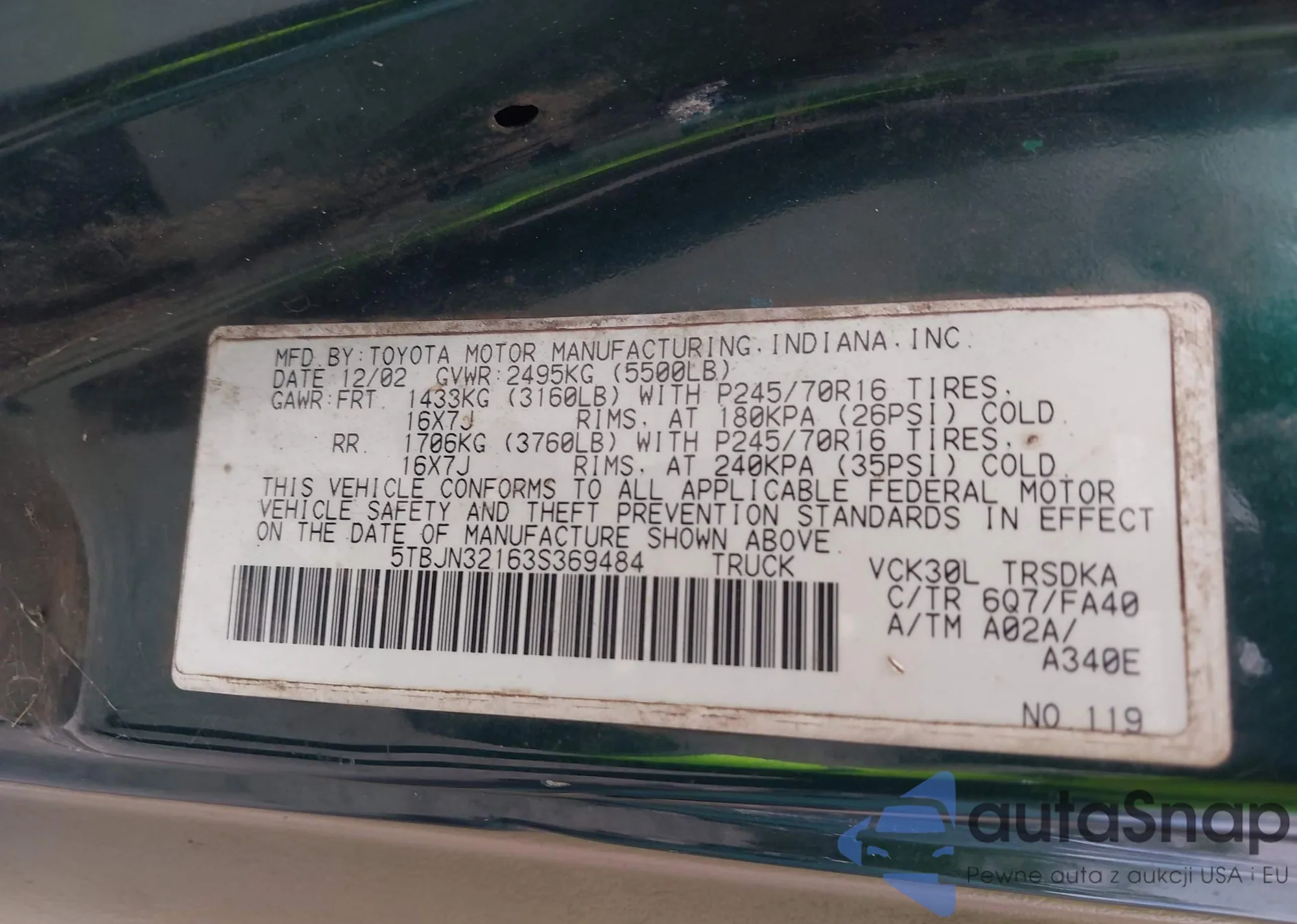 • VIN 5TBJN32163S369484