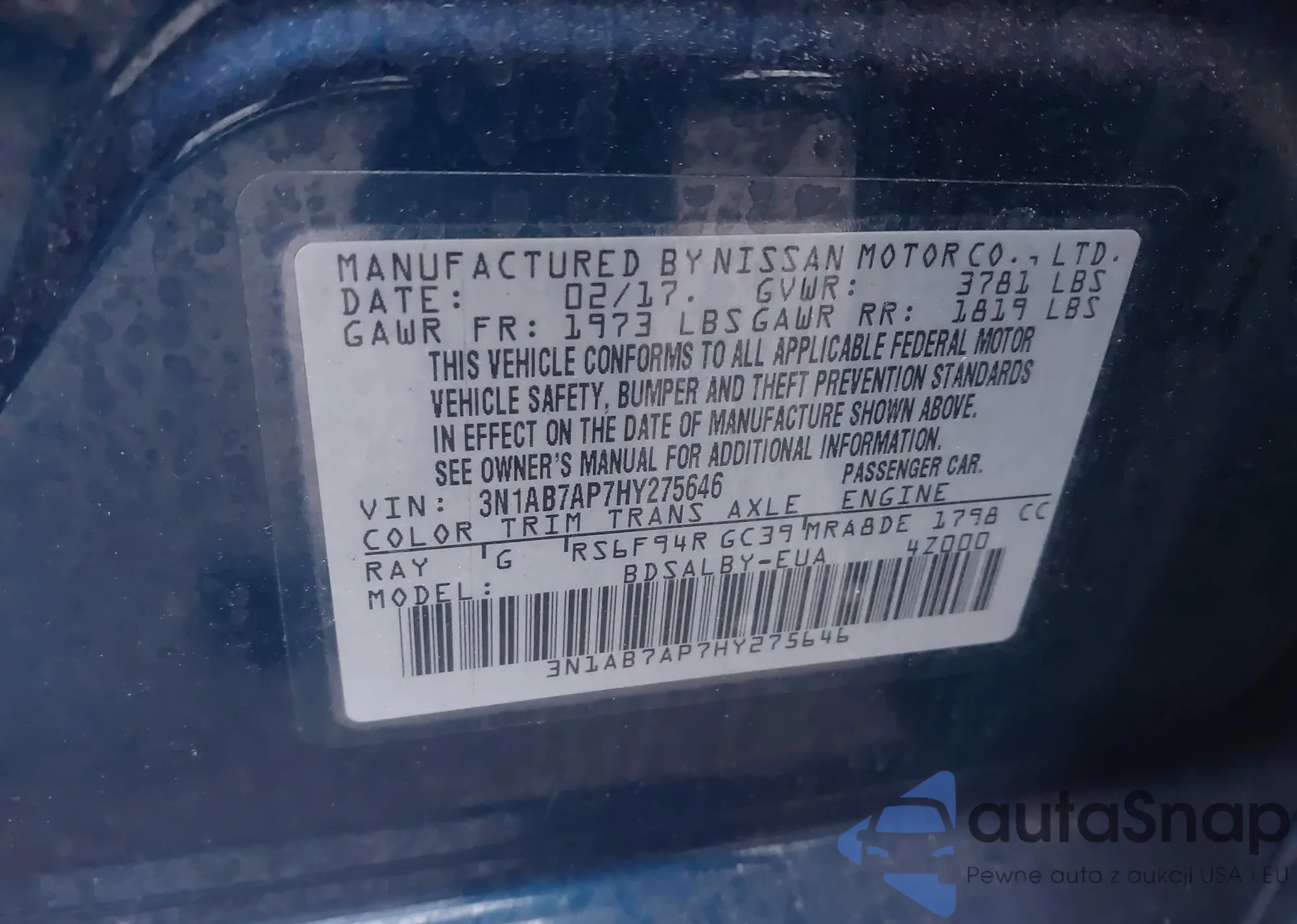 • VIN 3N1AB7AP7HY275646