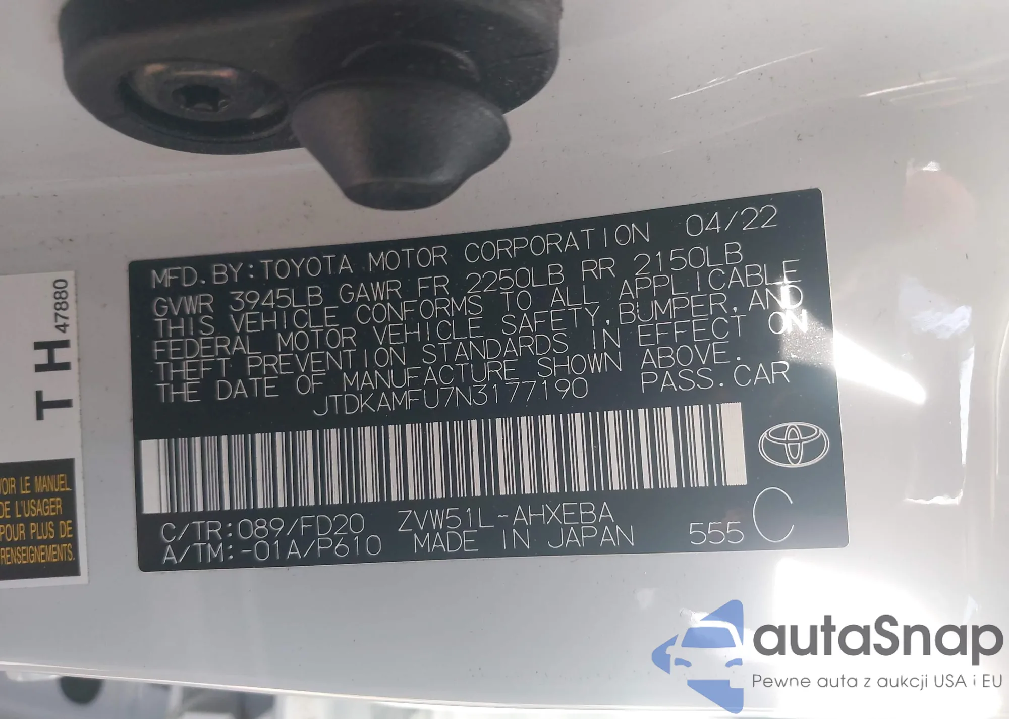 • VIN JTDKAMFU7N3177190