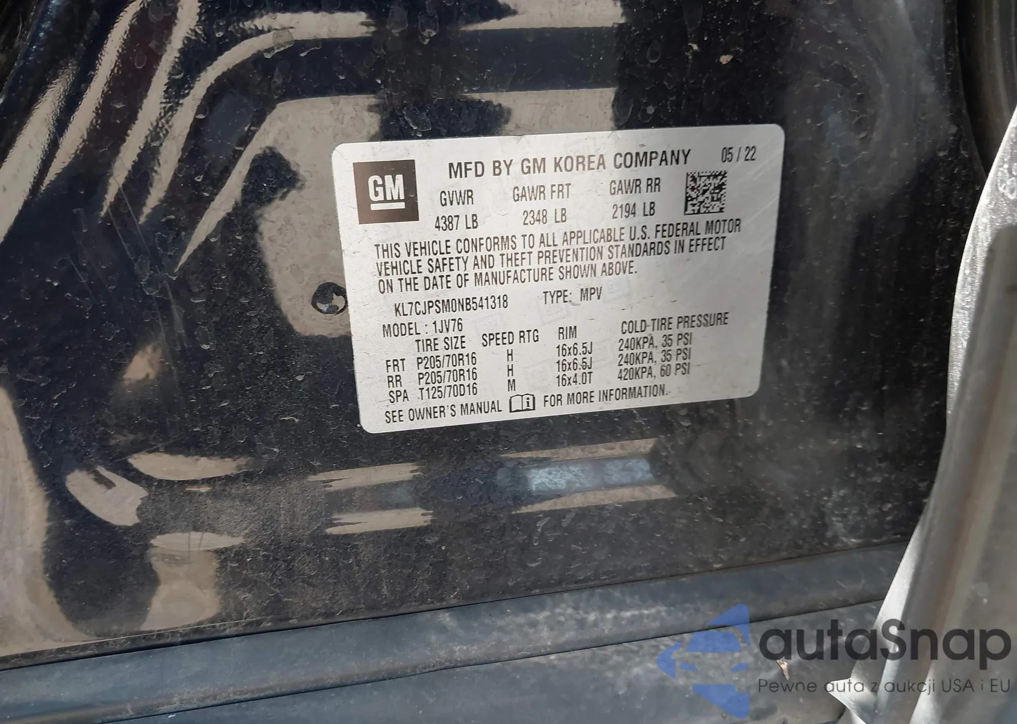 LOT: 43993583 VIN: JTDKAMFU7N3177190