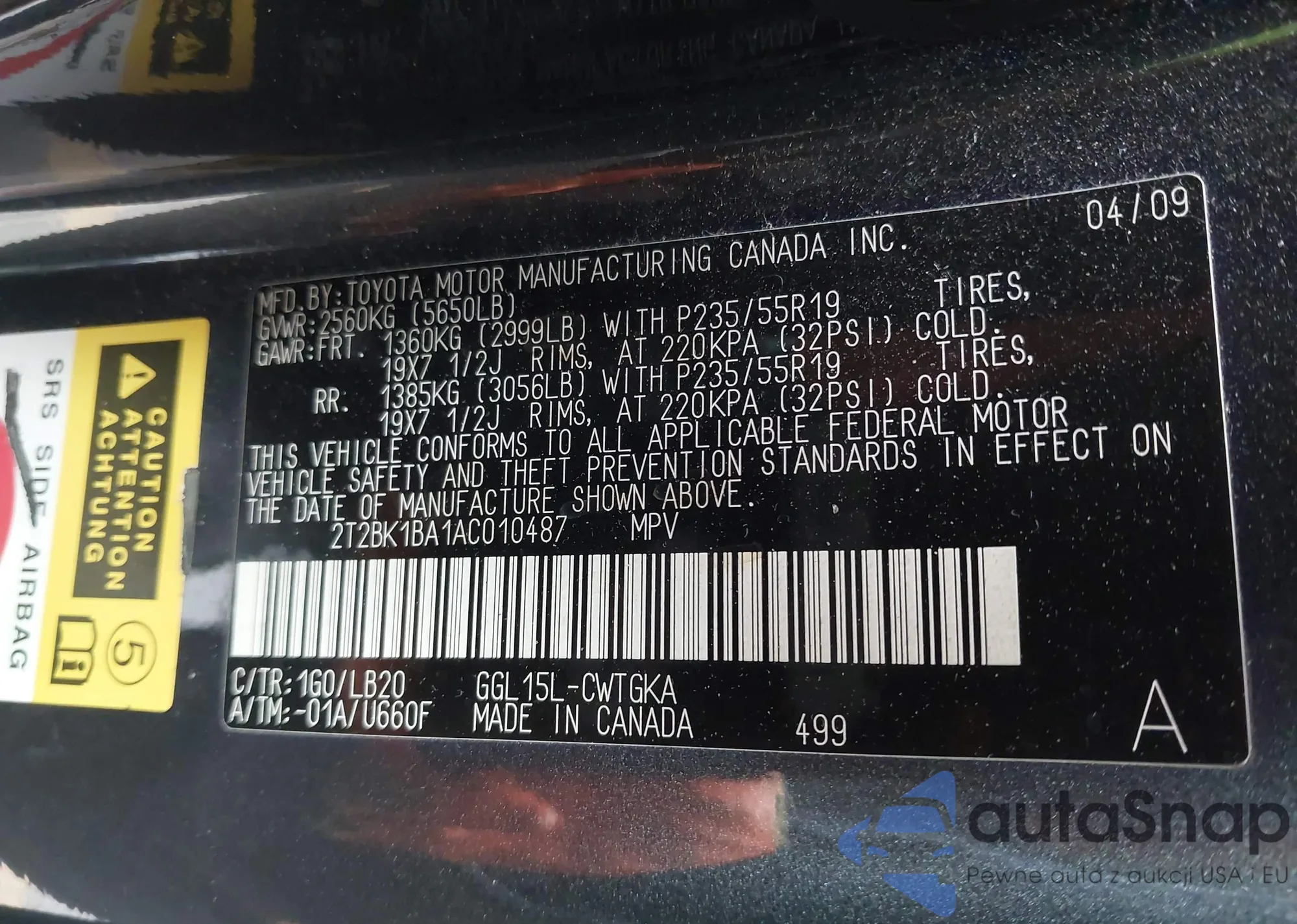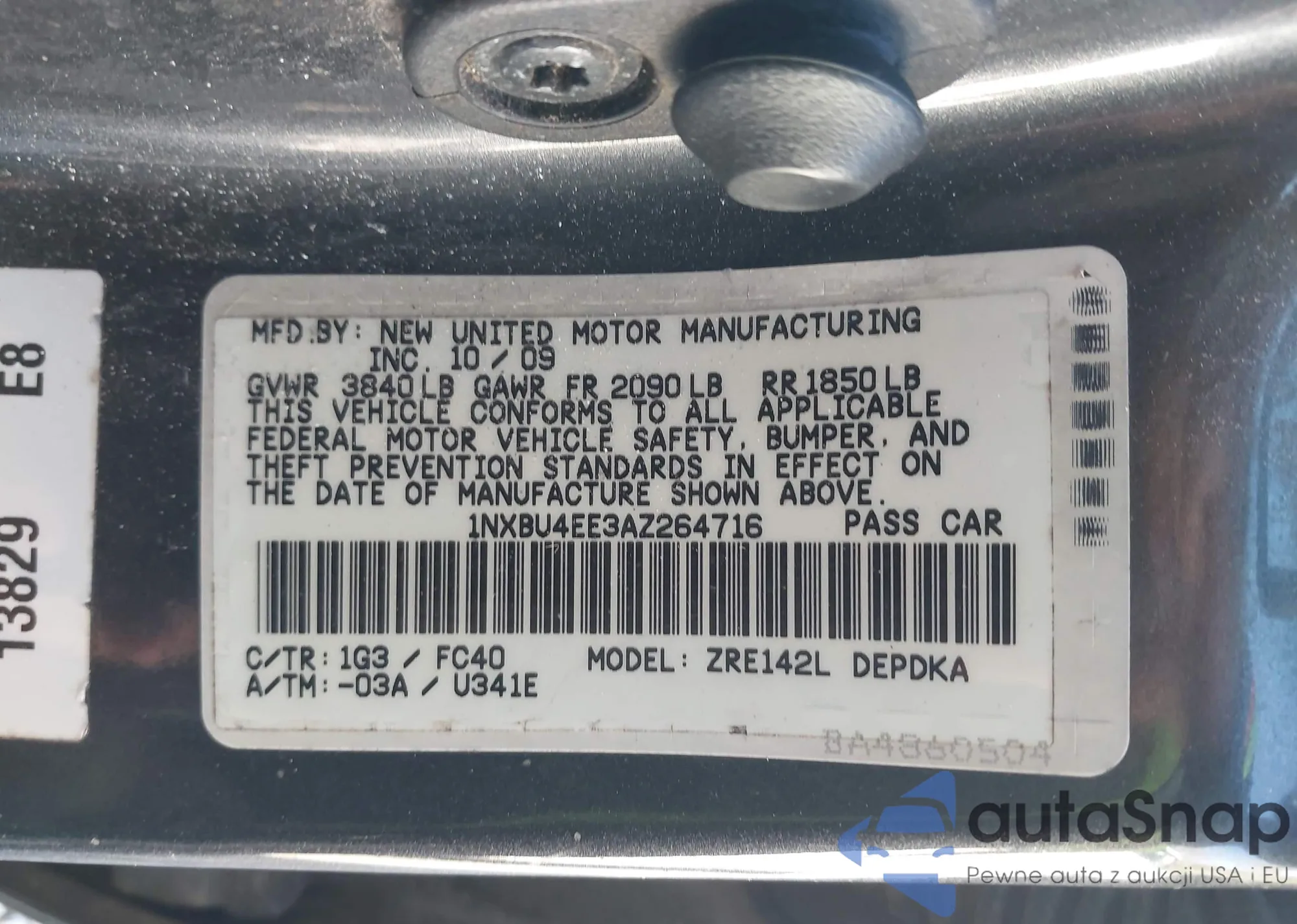 LOT: 44034658 VIN: 1NXBU4EE3AZ264716