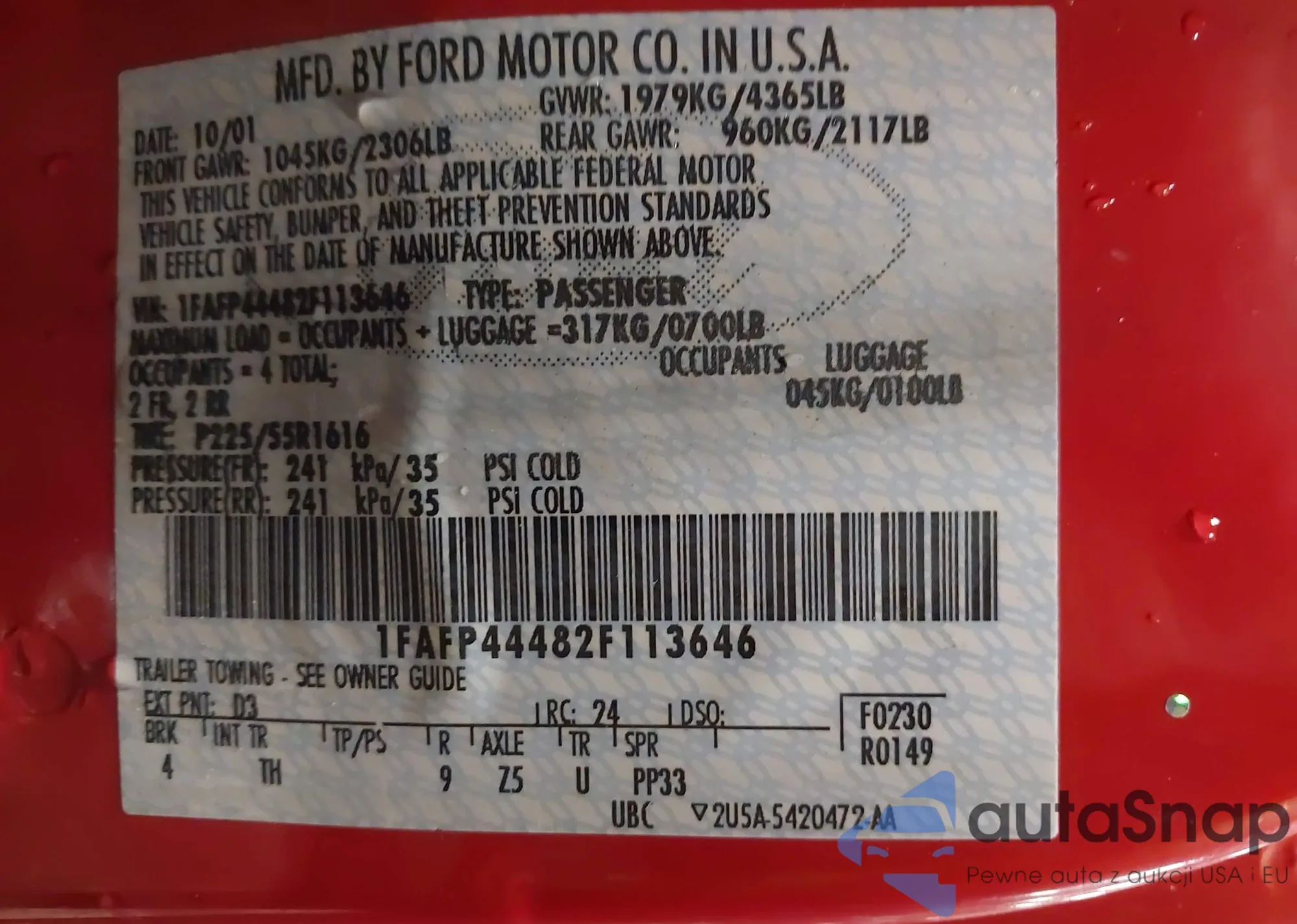 LOT: 44058983 VIN: 1FAFP44482F113646