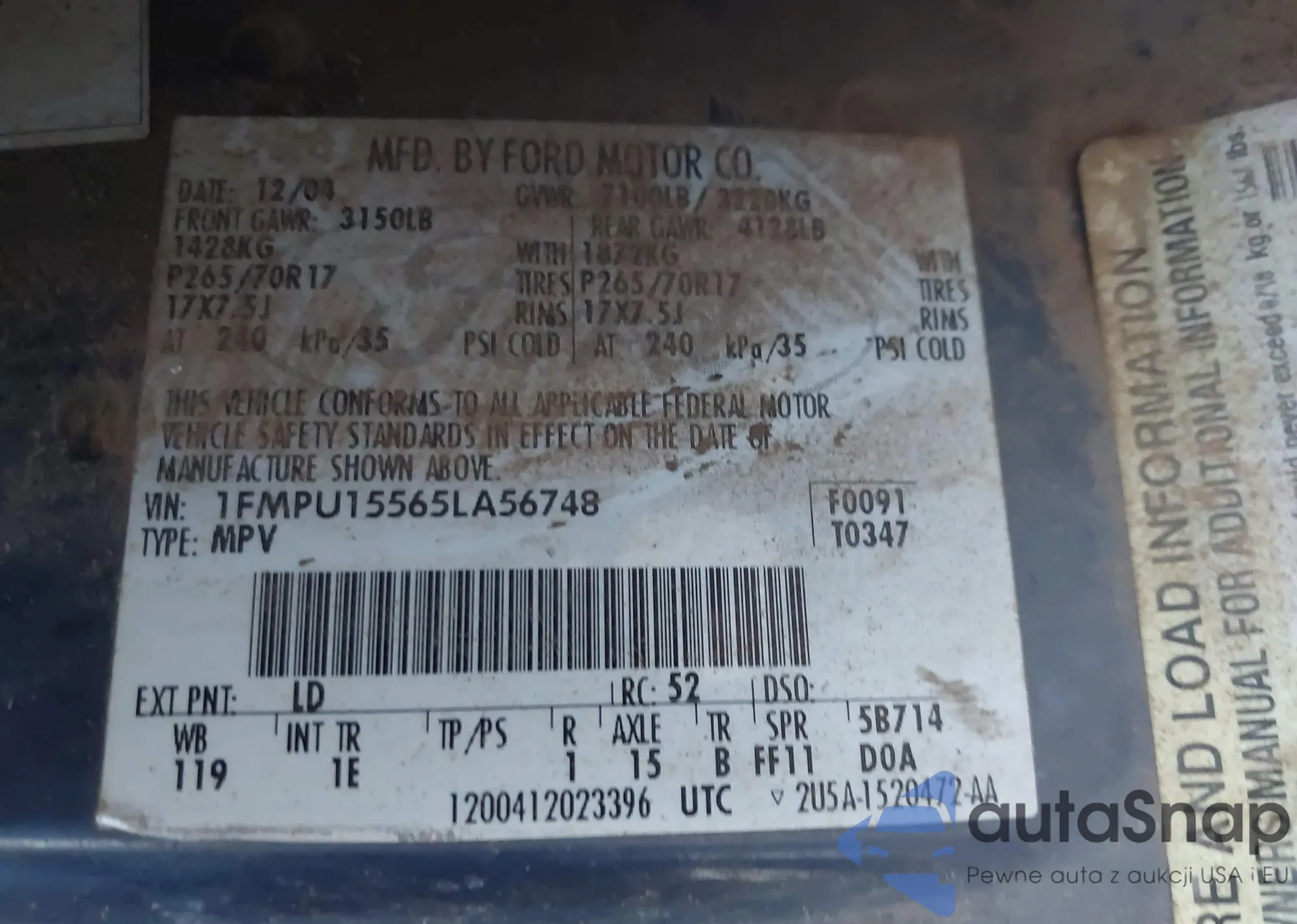 • VIN 1FMPU15565LA56748